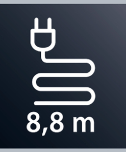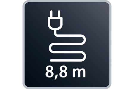 Profitez d’un confort d’utilisation maximal grâce à son long cordon de 6,2 m et de son rayon d’action de 8,8 m.