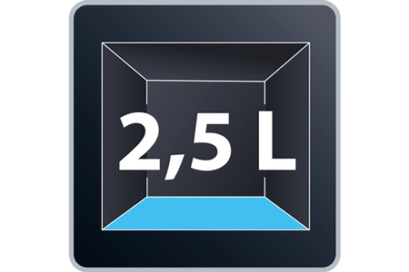La capacité de son bac de 2,5L est idéale pour nettoyer entièrement votre foyer, quelle que soit sa superficie.