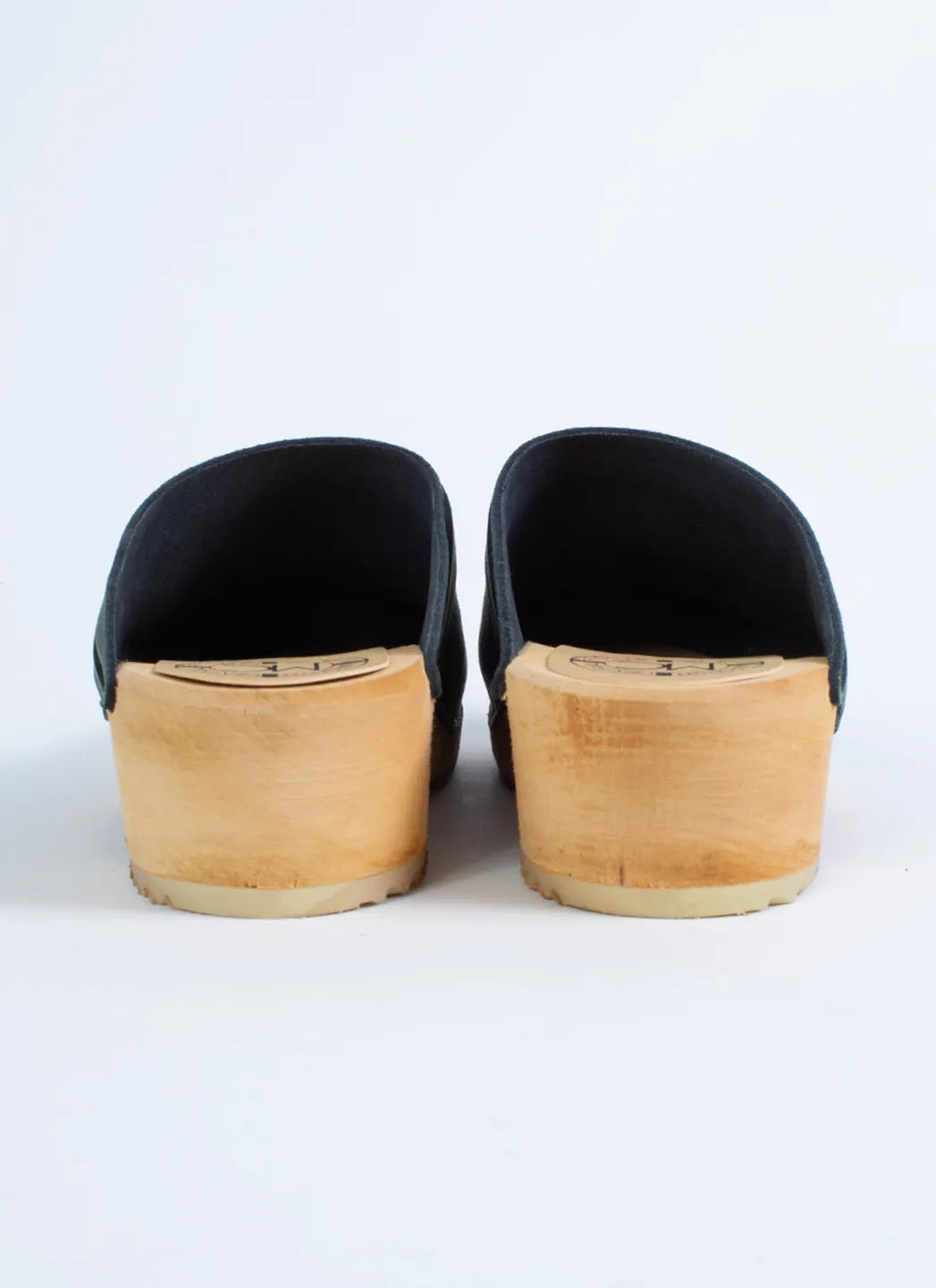 Sabots fabriqués en Suède par SKANETOFFELN pour Magasin Central. La semelle en bois épouse parfaitement la voute plantaire et confère à la chaussure une parfaite stabilité.