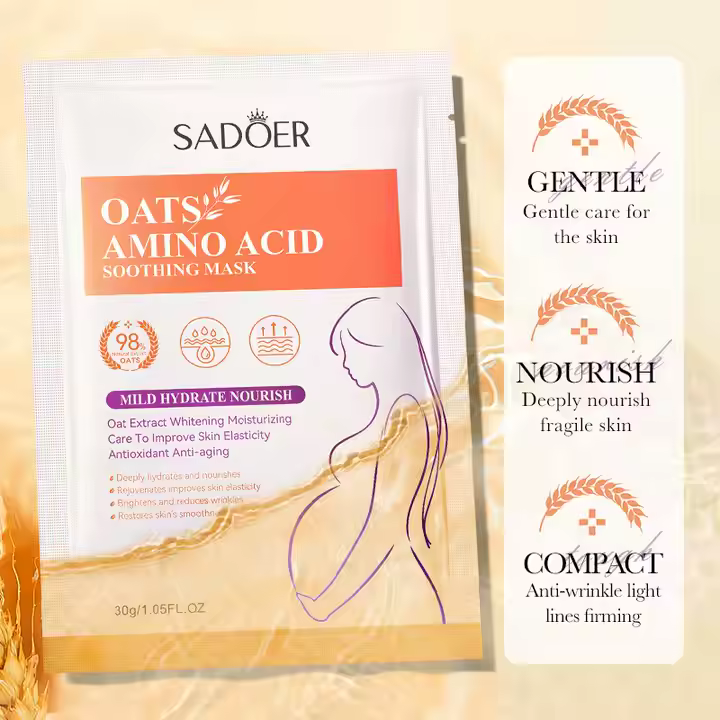 SADOER Masque Visage Hydratant Apaisant Aux Acides Aminés Vegan Masque Visage Avoine Sans Cruauté Pour Femmes Enceintes Pour Peaux Sèches Et Sensibles