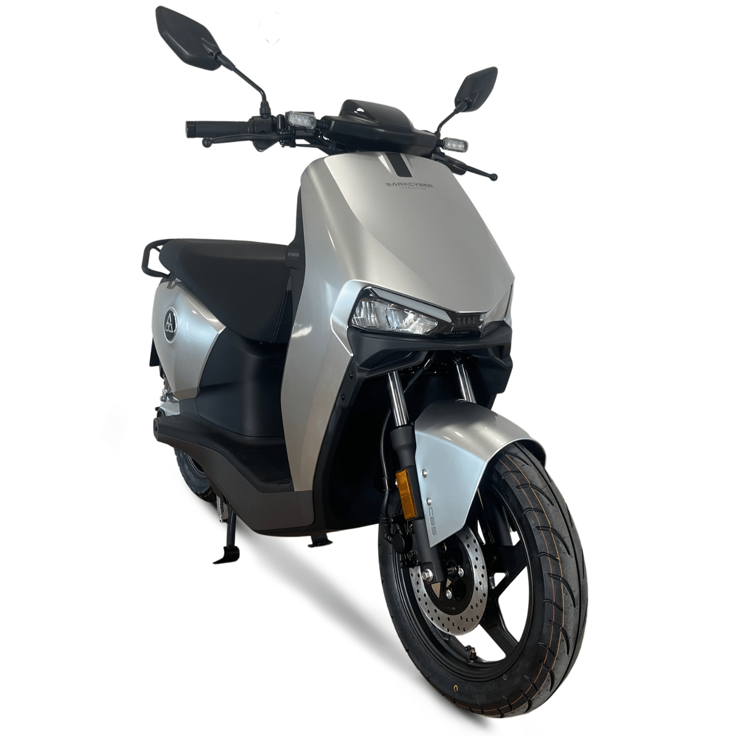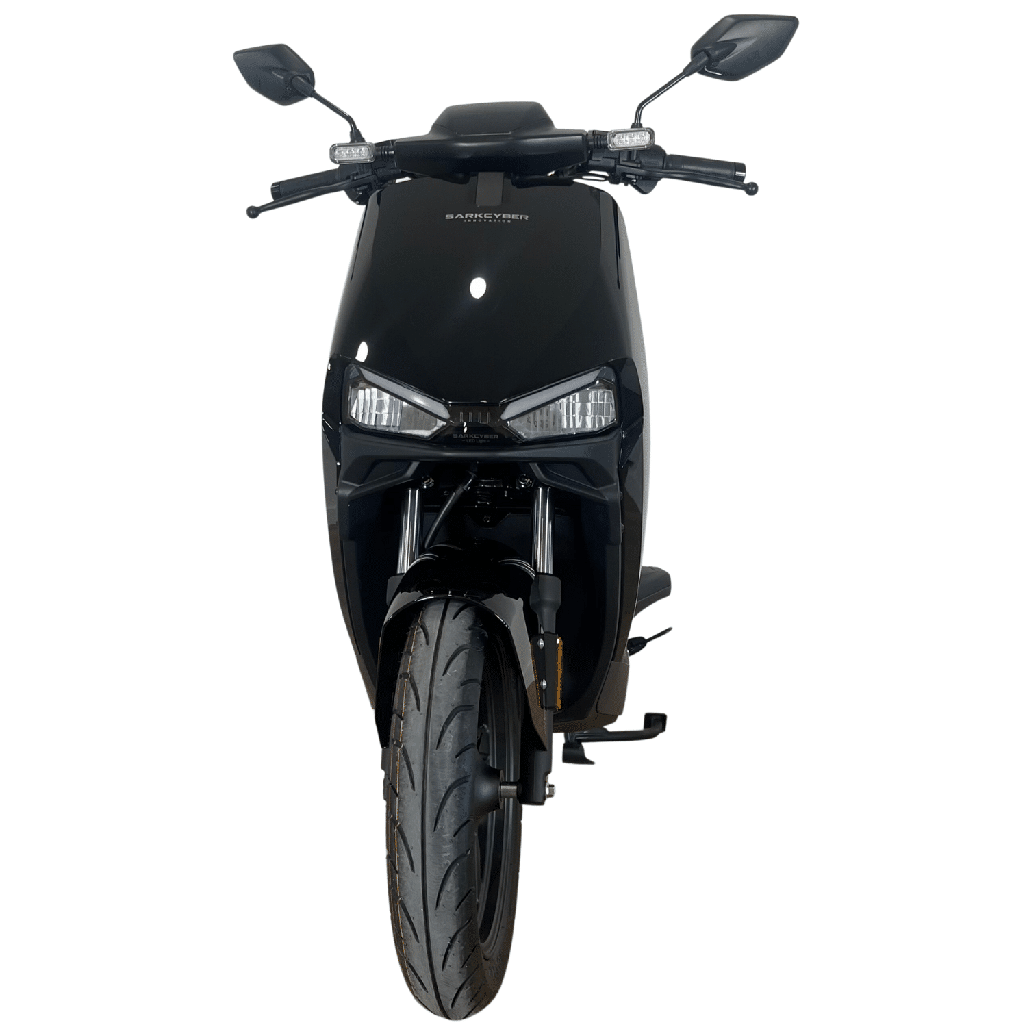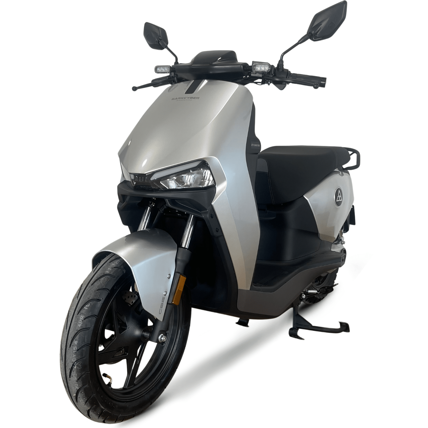 Sarkcyber HC200, un scooter électrique moderne, au design et aux finitions soignées : Sarkcyber est la marque premium de Super Soco. Il atteint les 75 km/h. Sa batterie amovible, compatible avec les prises 220V domestique, autorise une autonomie maximale de 99 kilomètres (en mode Eco).