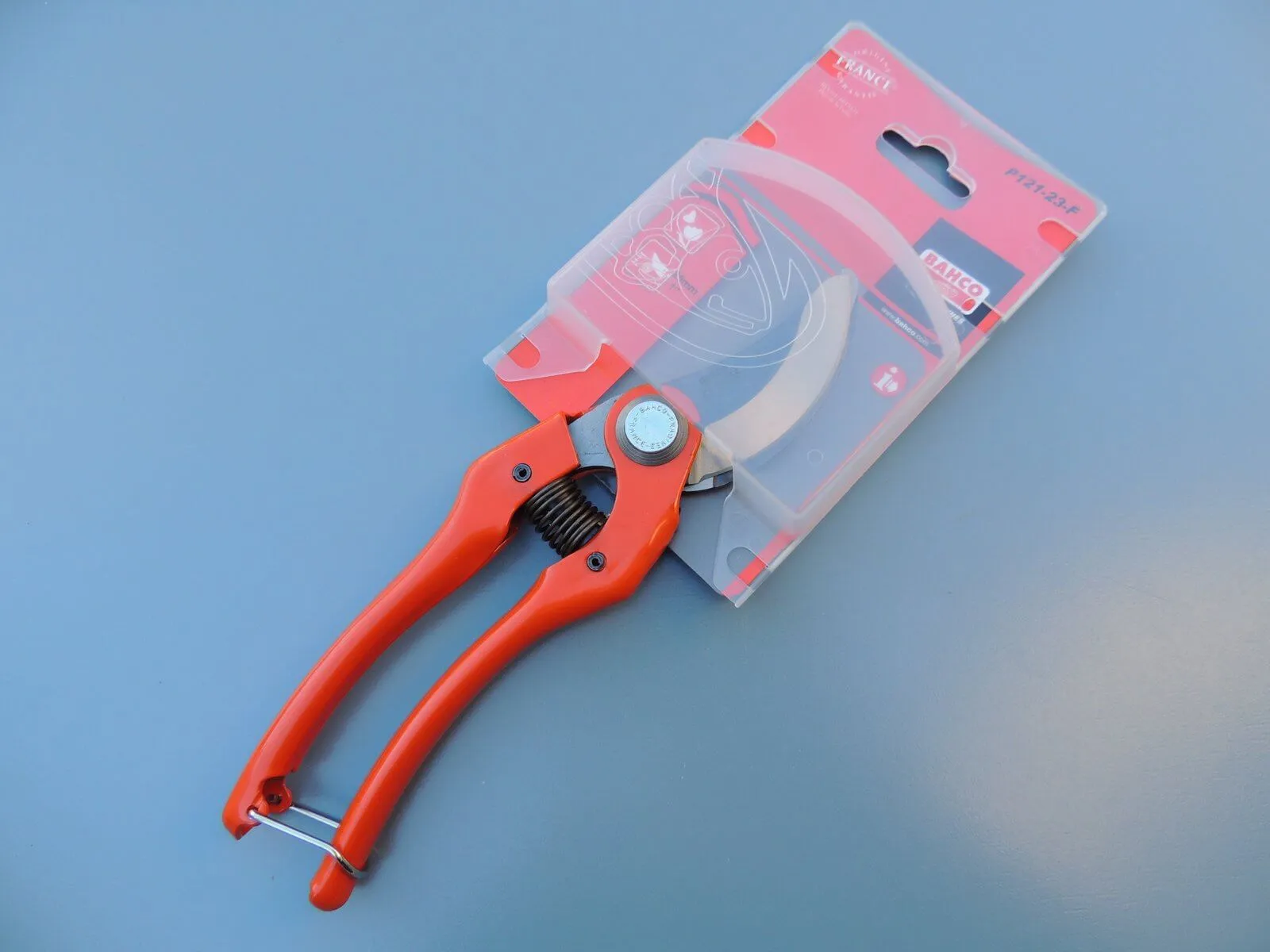 Sécateur Bahco rouge 23 cm, branches acier embouti
