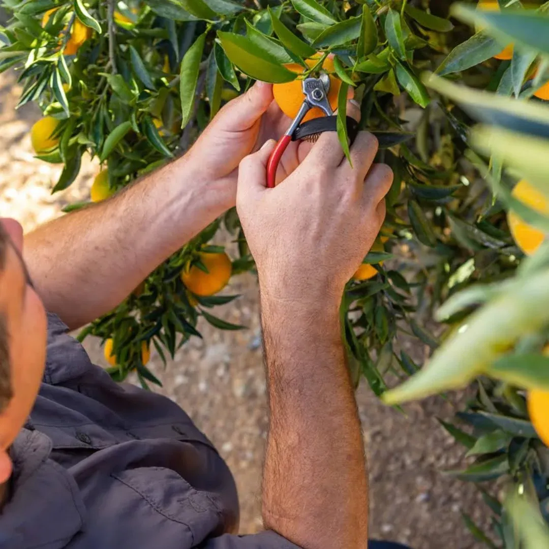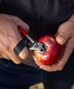 Spécialement conçu pour la cueillette des fruits comme les agrumes, pommes, poires, prunes ou encore pêches, le sécateur coupe-fruits FELCO 330, aussi appelé épinette, se distingue par sa lame fine et incurvée qui permet des coupes nettes sans abîmer la peau des fruits.