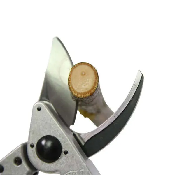 Le sécateur Felco 7 bénéficie d’une contre lame renforcée, solidement rivetée sur une poignée aluminium. La présence d’un essuie-lame évite que celle-ci ne colle.