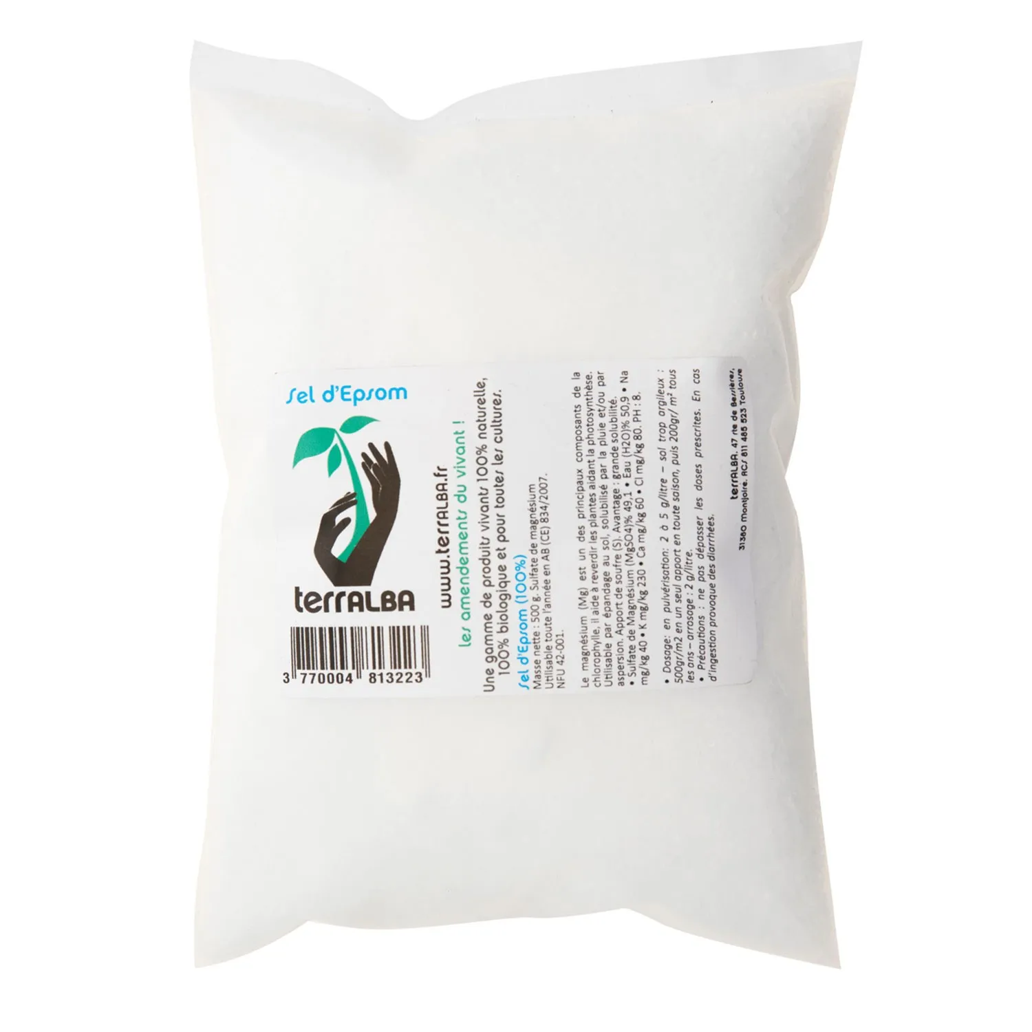 - Sulfate de Magnésium héptahydraté (MgSO4) 49,1 %