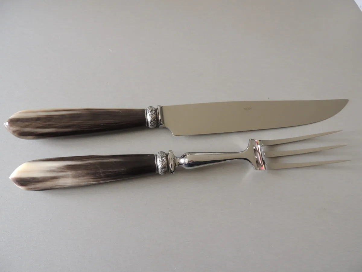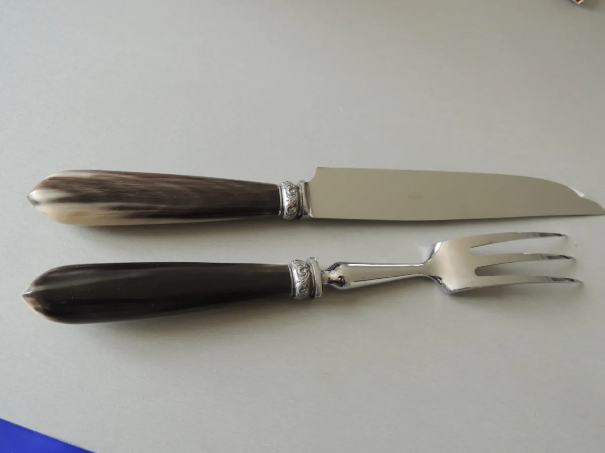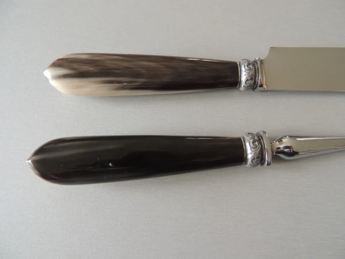 Service à découper, Corne blonde véritable fabrication française, 30 cm.