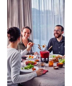 Appareil à fondue Beka pour 6 personnes. Fabriqué en fonte émaillée. Idéal pour les fondues de chocolat, fromage ou huile. Compatible tous feux dont induction et four.