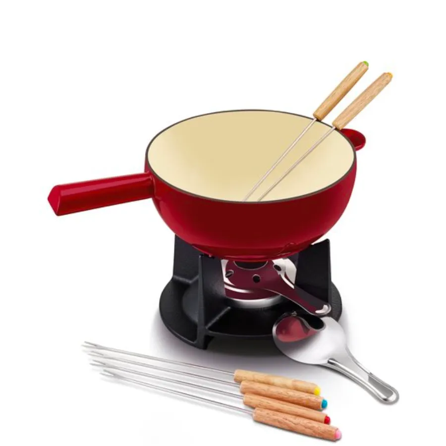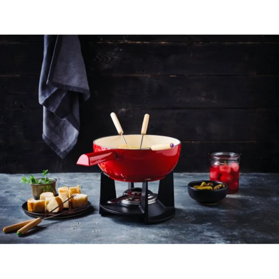 Appareil à fondue savoyarde Beka pour 6 personnes. Contenance : 1,8L. Fabriqué en fonte émaillée. Idéal pour les fondues de fromage, possibilité de faire fondre du chocolat ou de l’huile. Compatible tous feux dont induction et four. Garantie 2 ans.