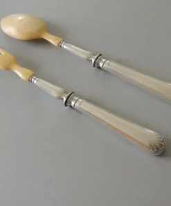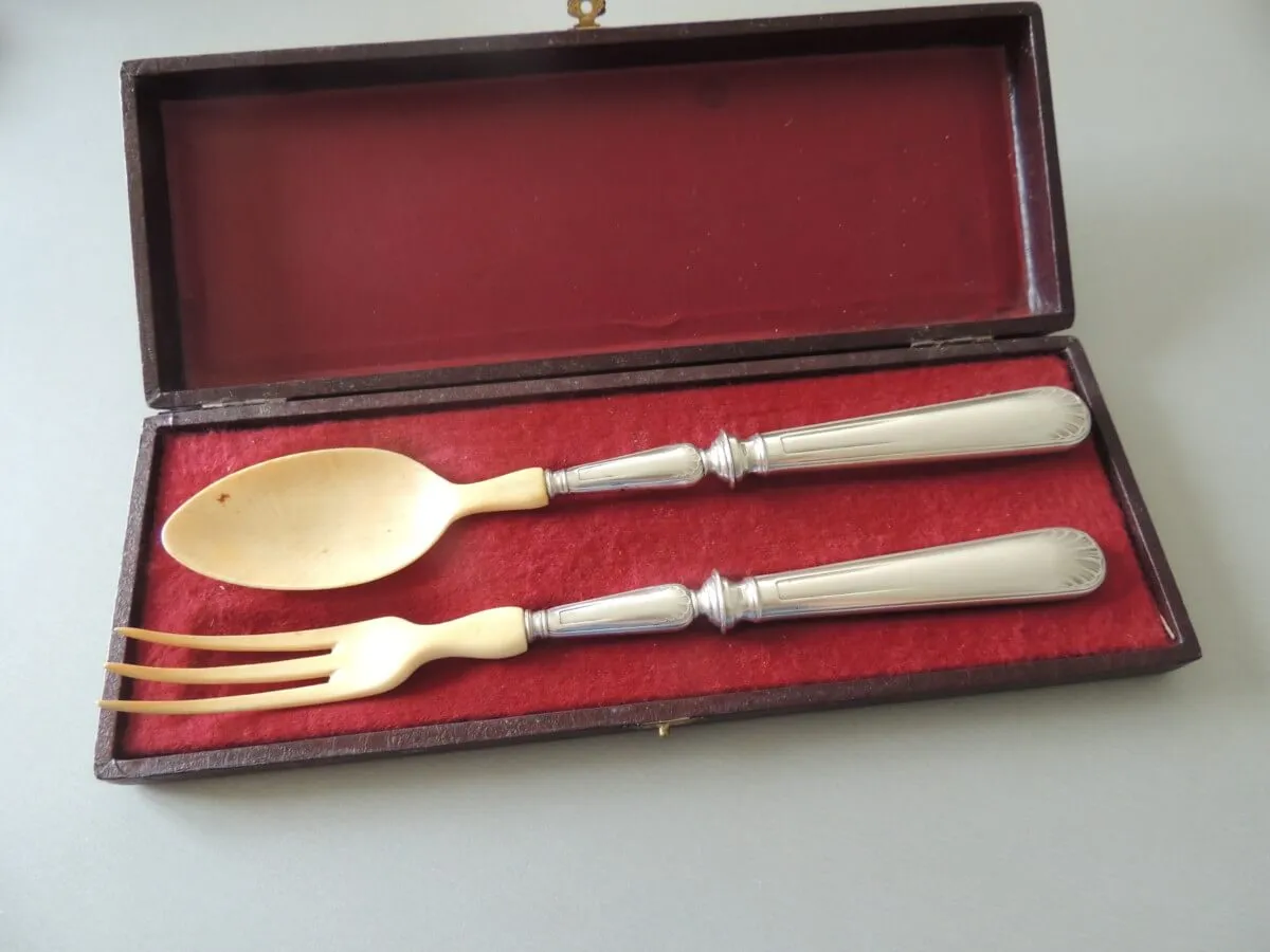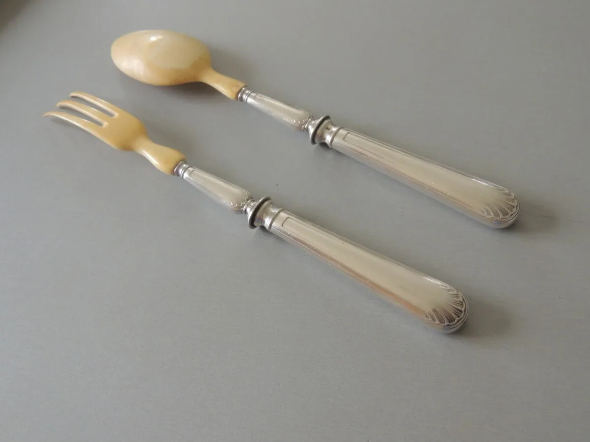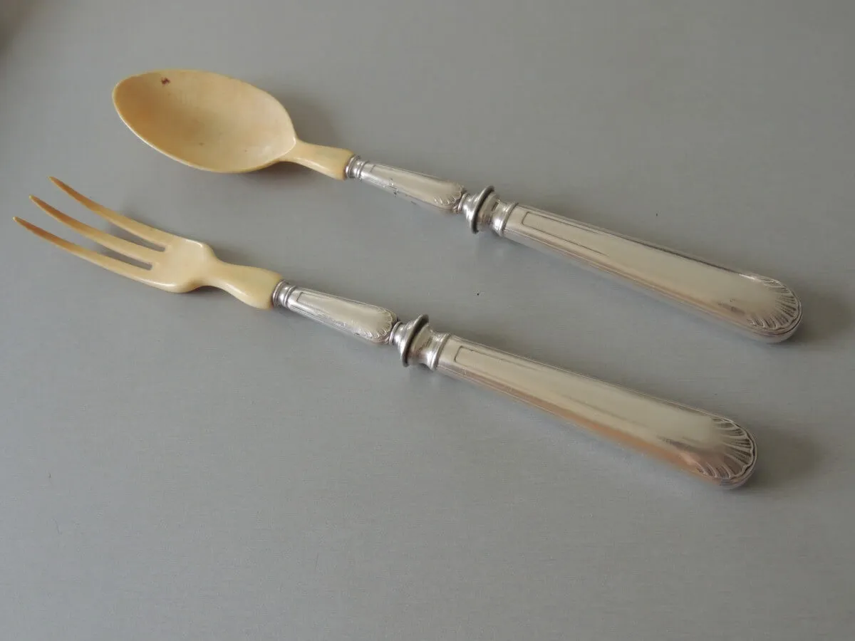 Ancien service à salade en argent et ivoire de 28 cm.