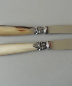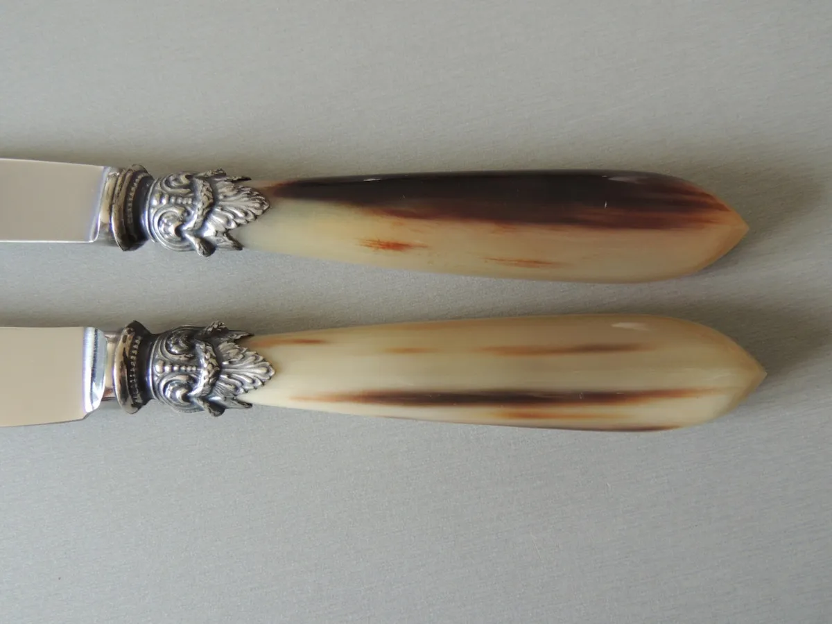 Manche en pointe de corne blonde véritable, virole en argent vieillit.