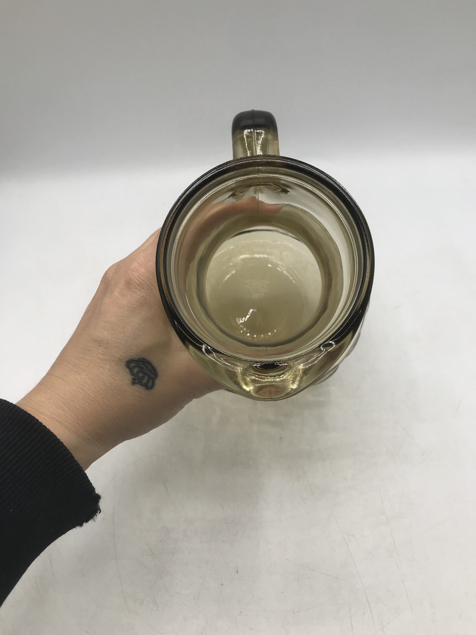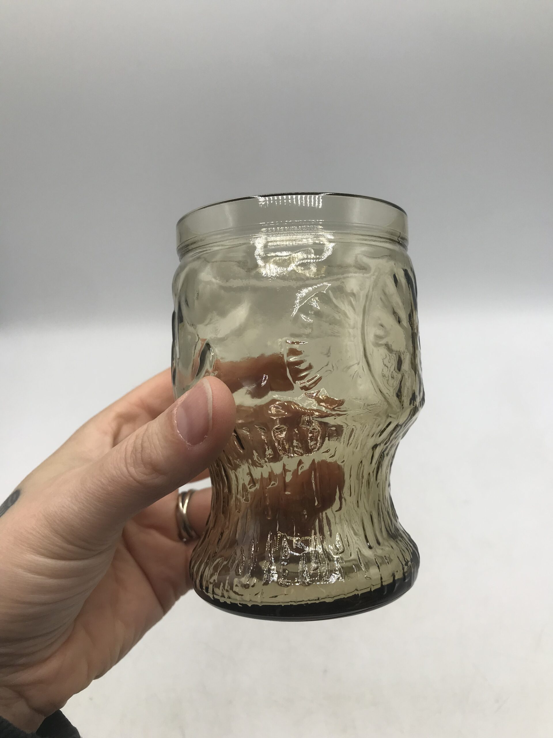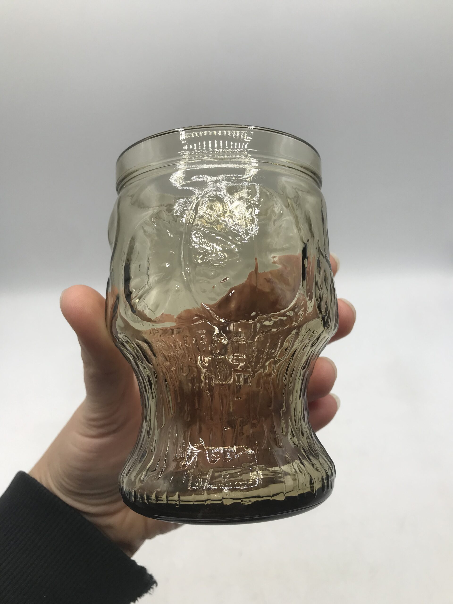 Service orangeade beige vintage. Bel ensemble, ce service est composé de 6 verres et d’un grand pichet. Il est en verre de couleur légèrement fumé ce qui lui donne une note vintage. Le pichet a un diamètre de 12,5 cm pour une hauteur de 23 cm. Les verres sont au nombre de 6, ils ont un diamètre de 7 cm pour une hauteur de 11 cm. Le tout est en parfait état, Made in Italy ce service a été fait avec gout. Les verres ont une forme parfaitement étudiée pour une prise ne main facile. Le service est décoré de fruits divers gravés dans le verre. Un bel ensemble pour venir embellir vos tables d’été. Le charme du vintage.