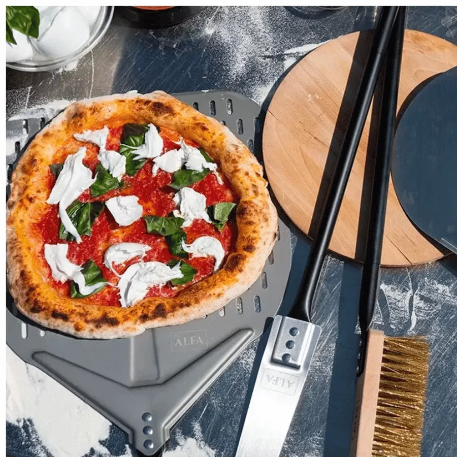 Ce set de 4 pièces contient tous les ustensiles nécessaires pour utiliser correctement votre four Alfa Forni.
