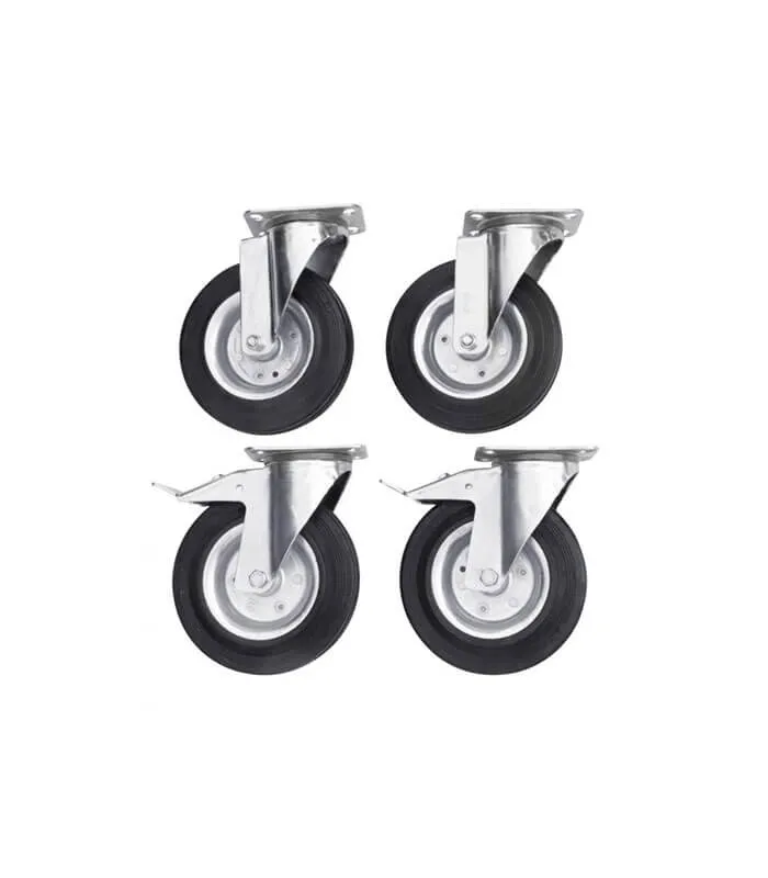 Set de 4 roues en acier galvanisé Remundi. Compatible avec tous les rangements de bûches Remundi et le brasero plancha Vulcano. Dimensions : 9 x 12 x 15 cm