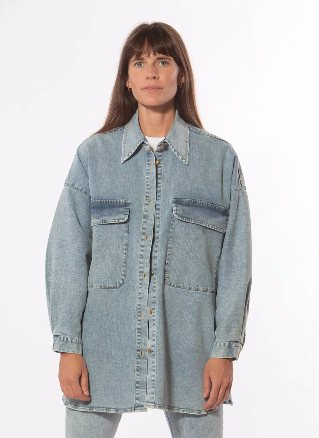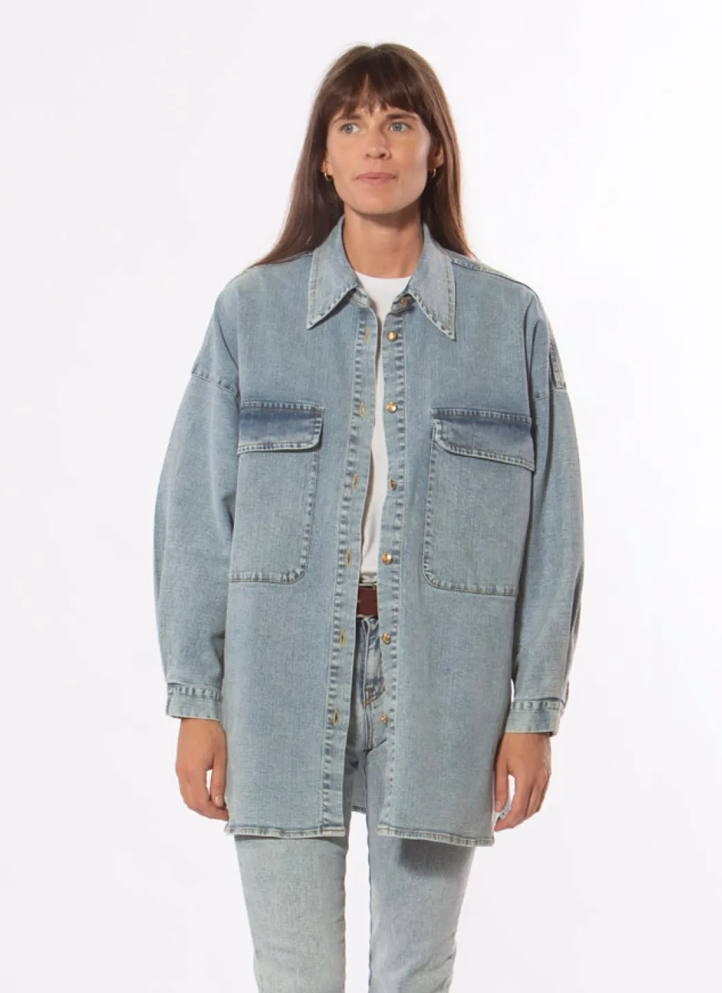 La chemise Manu est un produit typique de Shaft : une surchemise classique, mais avec une touche supplémentaire au niveau de la coupe et du tissu. La chemise est oversize et a des épaules tombantes et des poches basses sur la poitrine pour un look moderne. Le tissu est très délavé et possède des fibres extensibles qui en font une pièce très confortable à porter tous les jours.