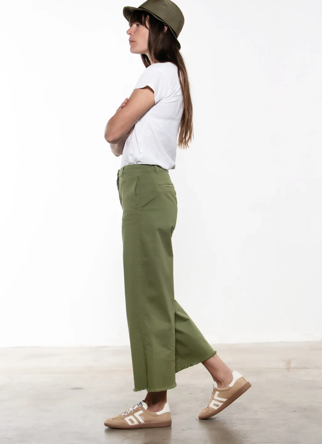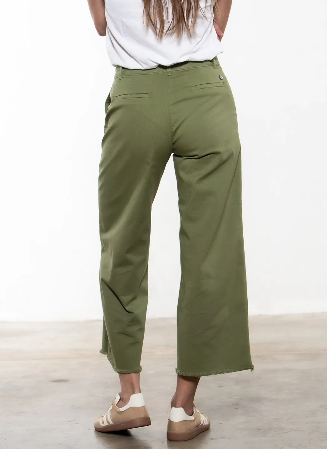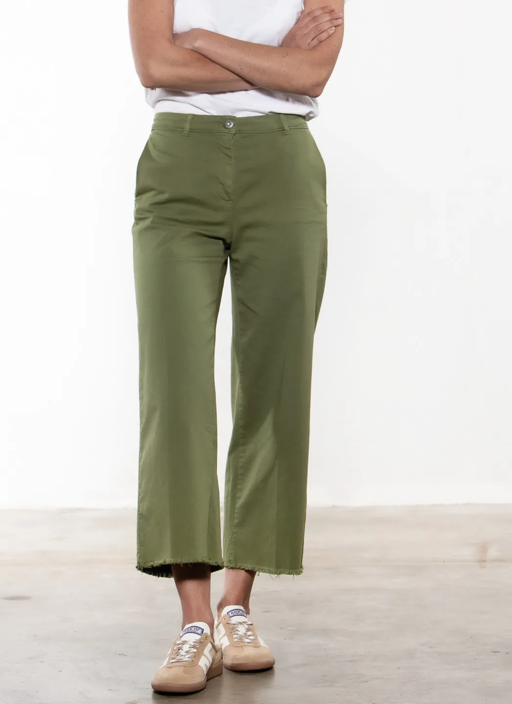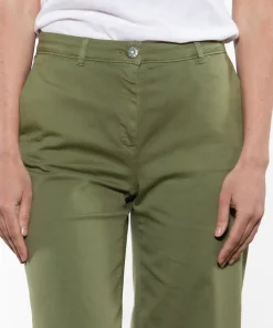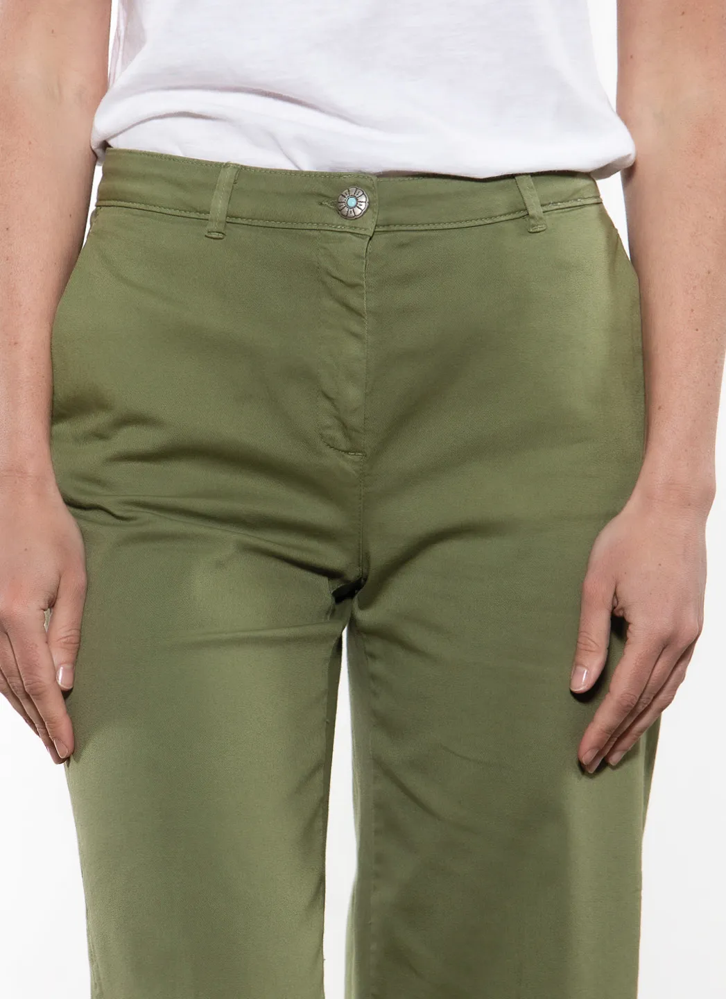 Pantalon chino en gabardine stretch. Coupe légèrement ample et longueur raccourcie.