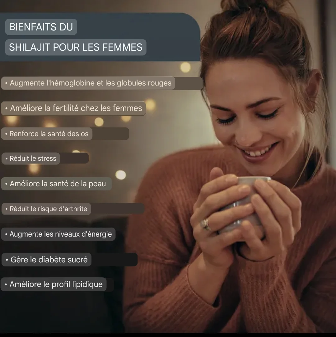 Le shilajit est un adaptogène traditionnellement utilisé pour les troubles du système immunitaire et du système nerveux, des voies urinaires, la fatigue chronique, la perte de mémoire, la réduction des tumeurs et les dysfonctionnements sexuels. Il piège les radicaux libres et reste considéré comme un agent anti-stress.