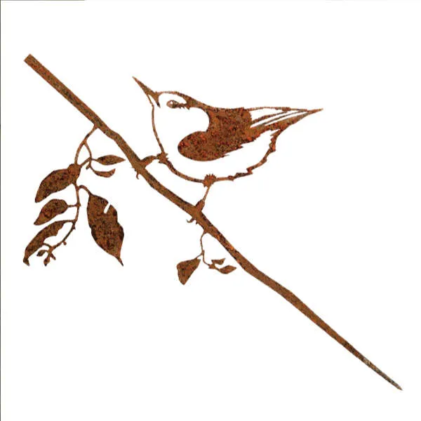 Quel drôle d’oiseau que cette Sittelle torchepot sculptée dans un métal rouillé et perchée sur sa branche un peu tordue. Mais d’une telle grâce et d’une telle finesse de reproduction que l’on pourrait la prendre pour vraie.