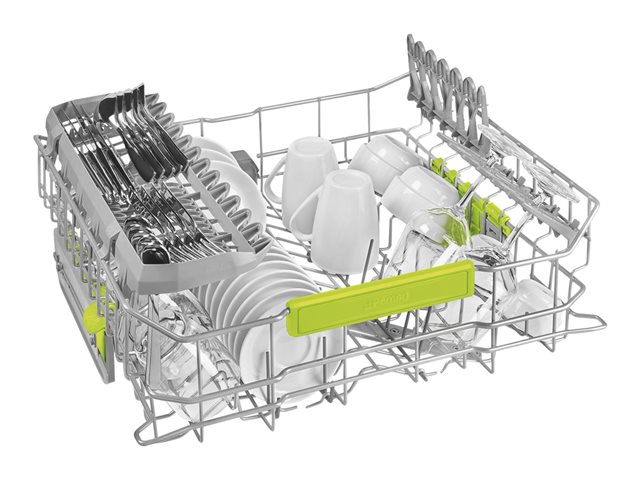 | Avantage du panier supérieur réglable en hauteur : Permet de laver des plats de grandes tailles |