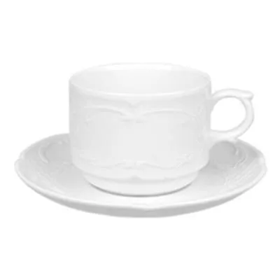 Ces sous-tasses à louer, de couleur blanche, se marieront parfaitement avec la décoration de votre buffet à café ou de vos tables de banquet.
