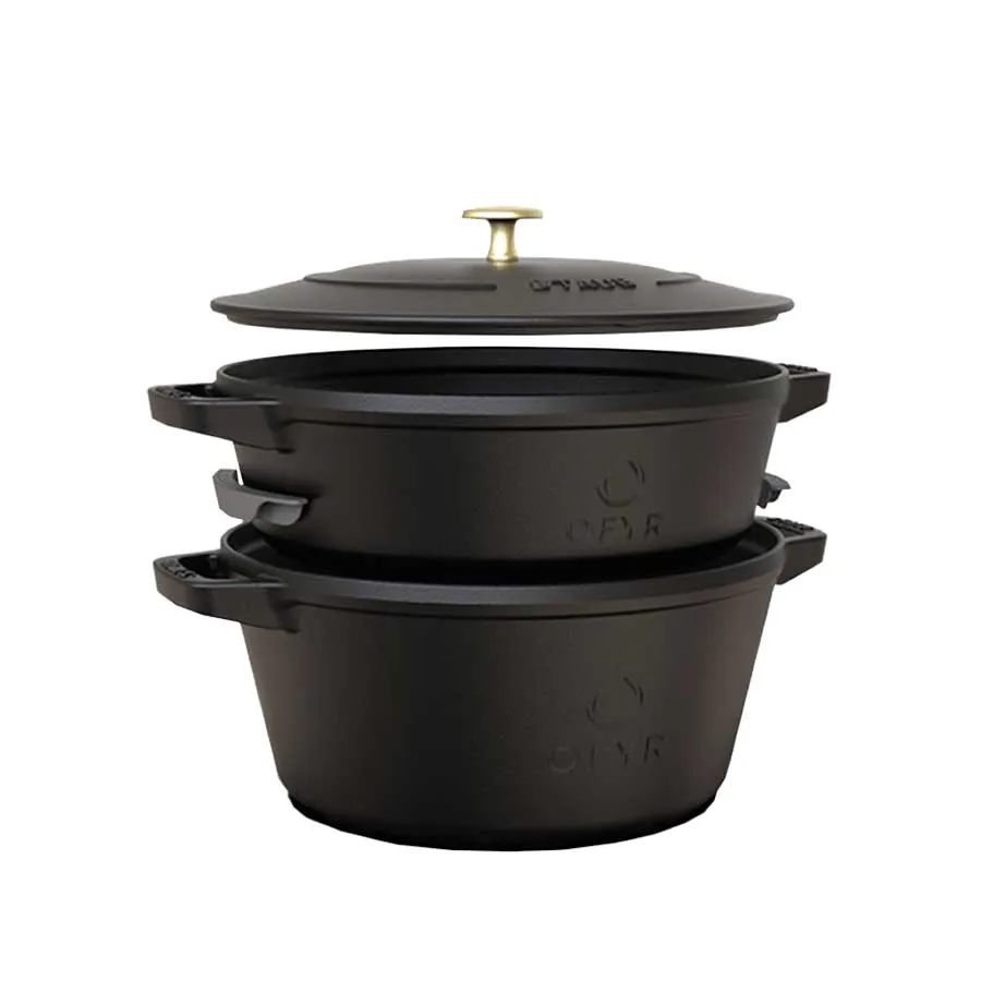 Set composé 2 casseroles et 1 couvercle en fonte Staub. Compatible avec plaque de cuisson, grille et four à pizza Ofyr.