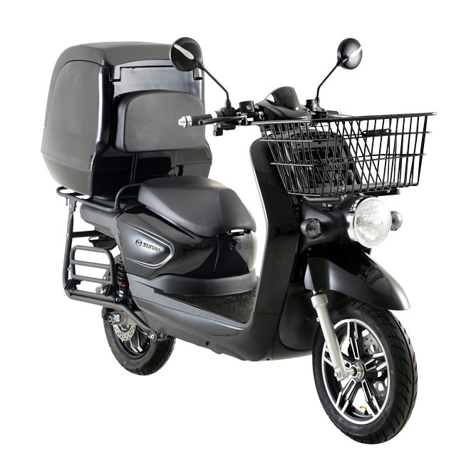 C’est pourquoi nous avons choisi de distribuer le Sunra Cagoo, un scooter électrique pour les professionnels de la livraison pourvu d’un moteur véloce de 3 000W, fait assez rare parmi les véhicules électriques équivalents 50 cm3, et d’une autonomie de 110 km par charge. L’autonomie varie bien entendu selon les conditions d’utilisation, pour plus de précisions, vous pouvez consulter notre simulateur d’autonomie.