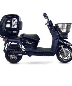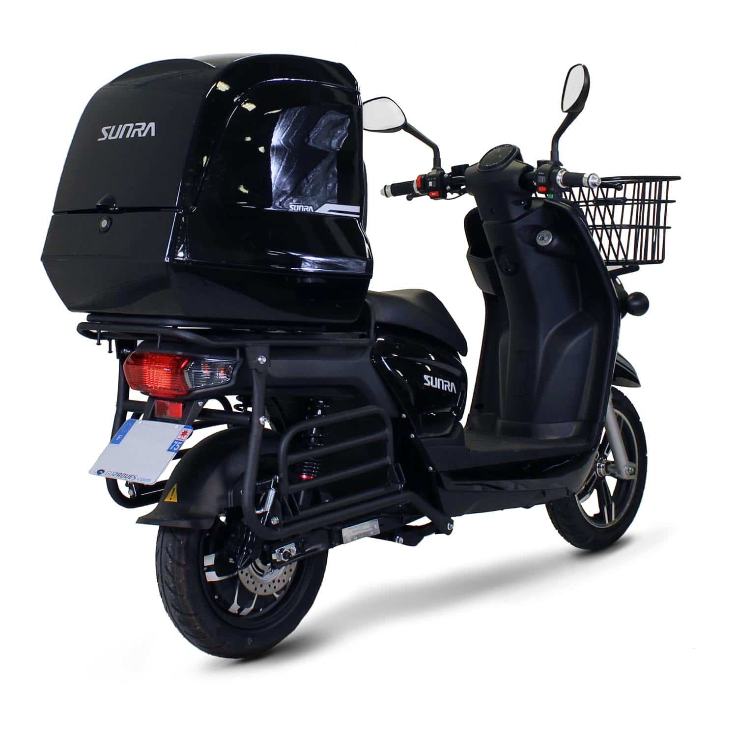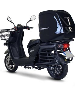 C’est pourquoi nous avons choisi de distribuer le Sunra Cagoo, un scooter électrique pour les professionnels de la livraison pourvu d’un moteur véloce de 3 000W, fait assez rare parmi les véhicules électriques équivalents 50 cm3, et d’une autonomie de 80 km par charge. L’autonomie varie bien entendu selon les conditions d’utilisation, pour plus de précisions, vous pouvez consulter notre simulateur d’autonomie.