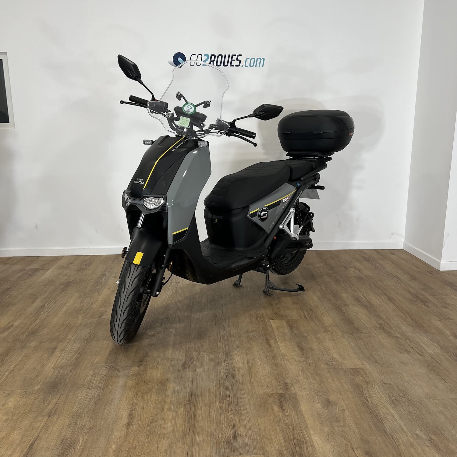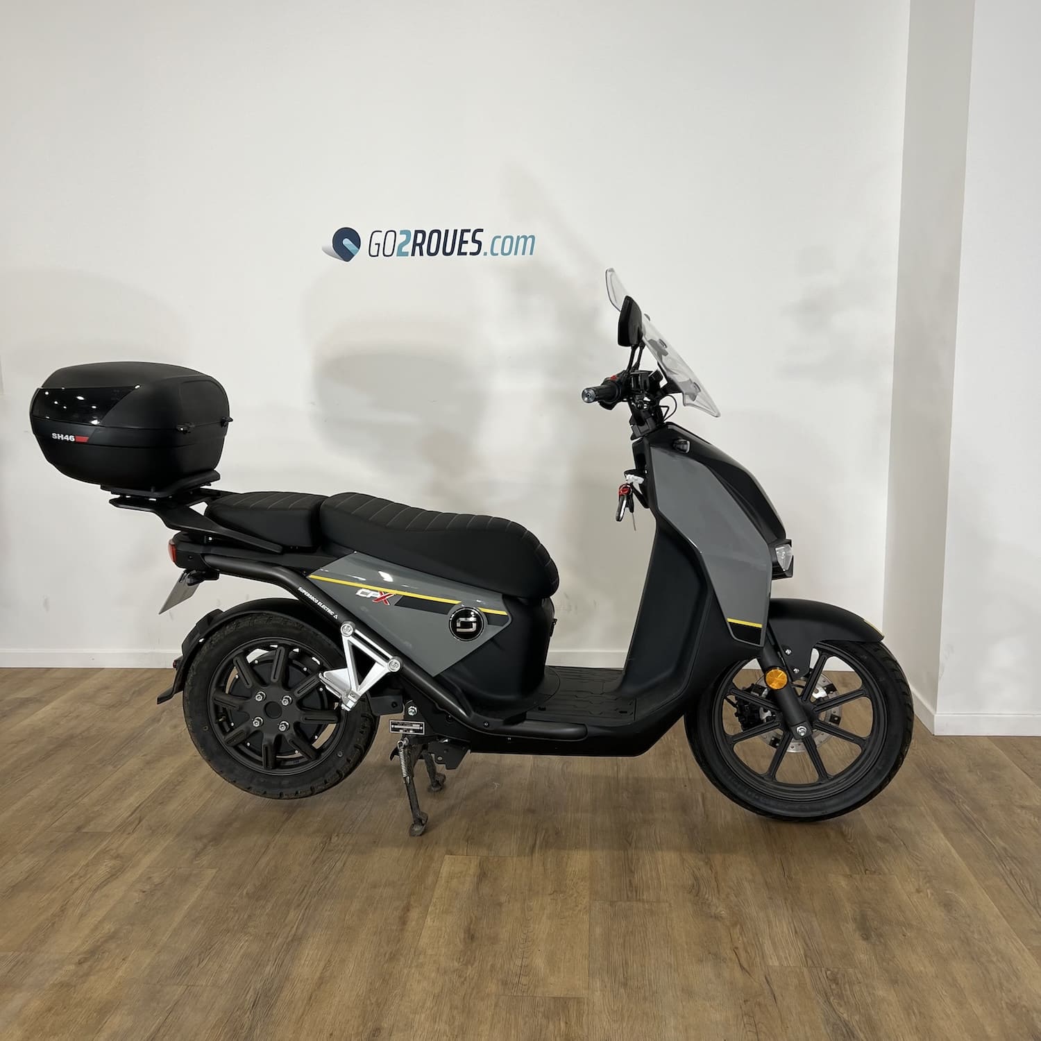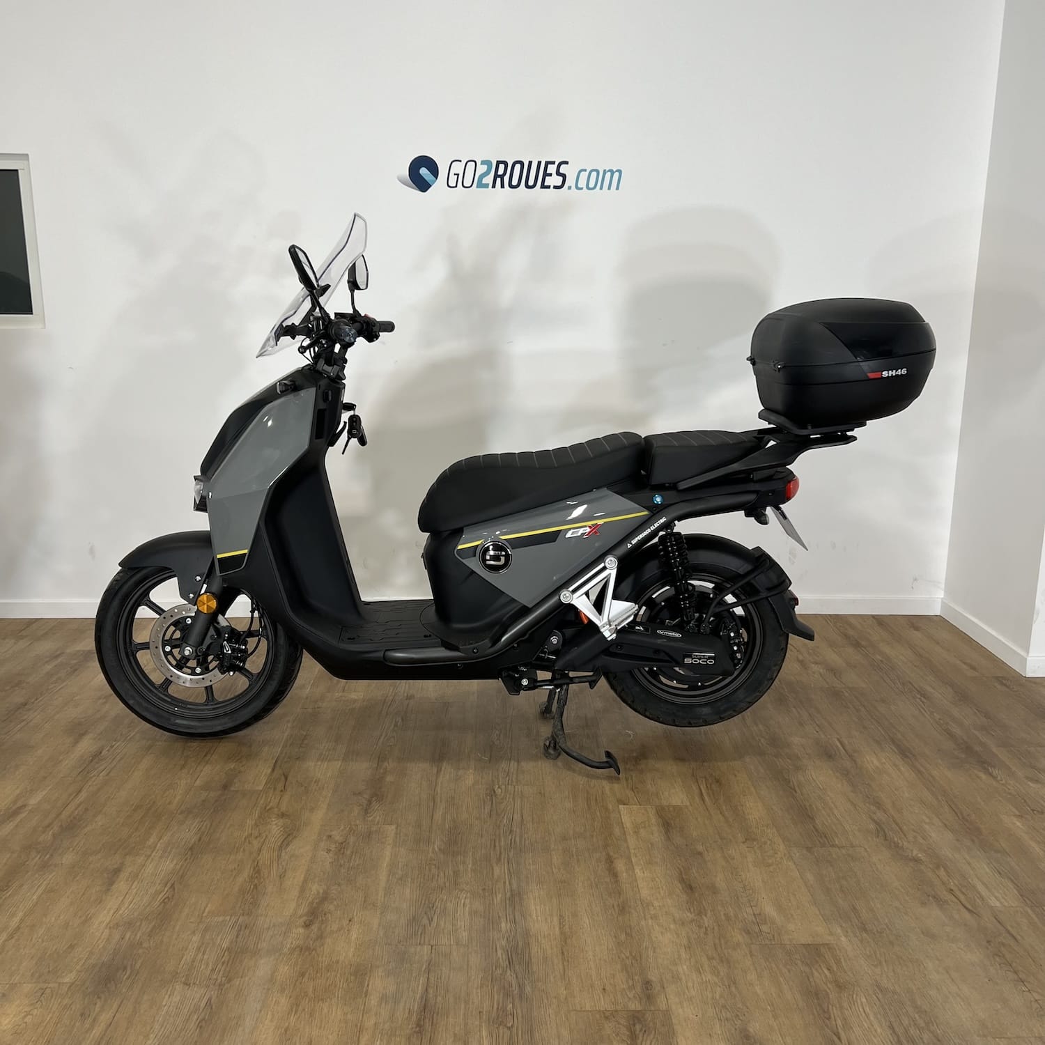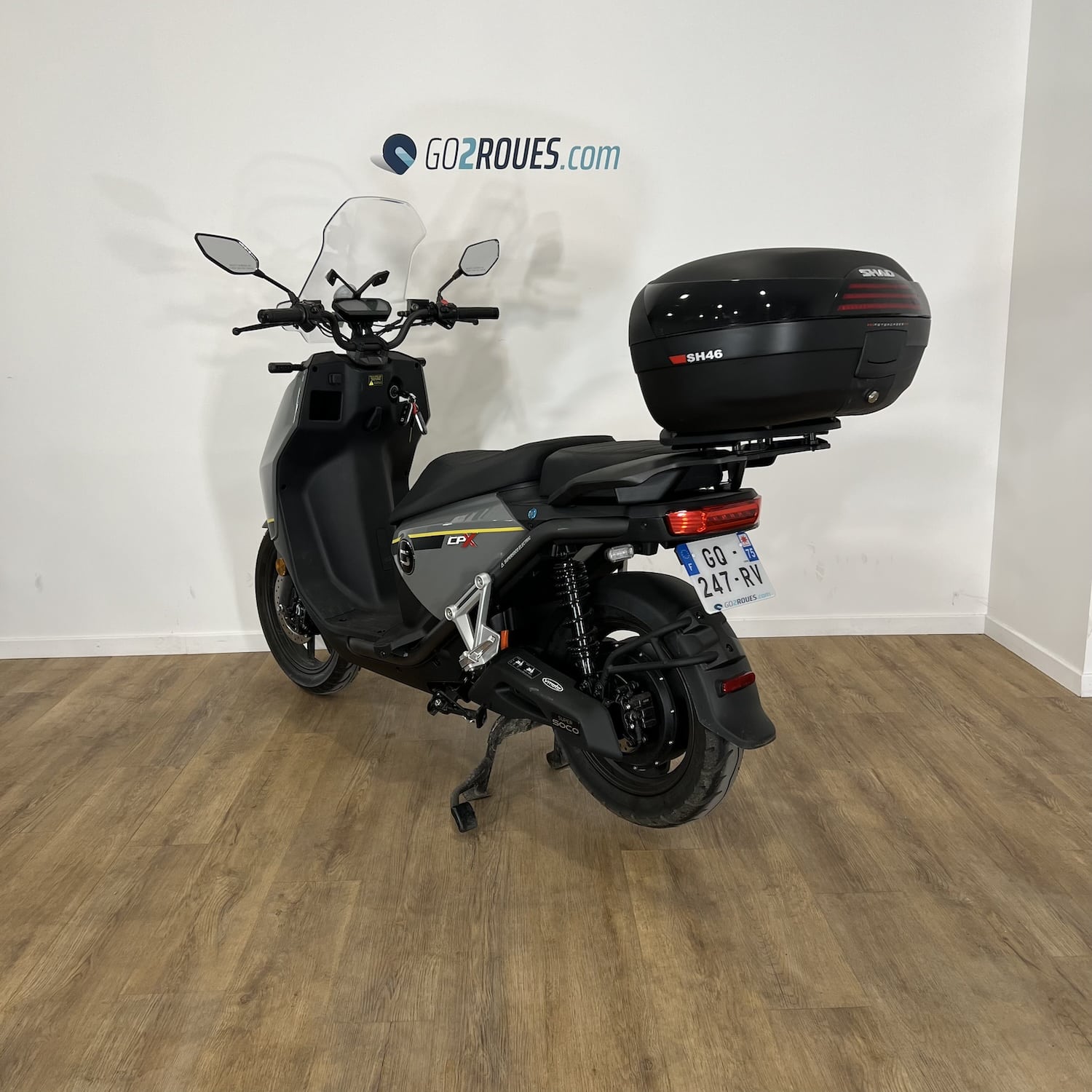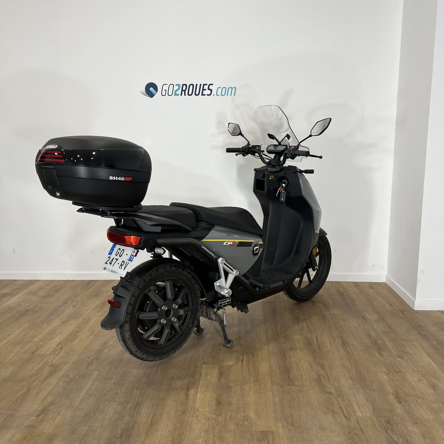 Ce véhicule électrique d’occasion Super Soco CPX est en bon état. Il affiche 485 kilomètres au compteur et est garanti pièce et main d’œuvre pendant 06 mois après la date de votre commande. Si la date de mise en circulation du véhicule est inférieure à 2 ans, la garantie constructeur fait foi jusqu’au 2ème anniversaire de la date d’immatriculation du 2-roues. Occasion Go2roues, avant de vous être proposé, il a été contrôlé sur 57 points. La partie cycle, moteur, éclairage, batterie et autonomie ont notamment été vérifiés par nos techniciens spécialisés. Il est vendu avec son top case SHAD 46L.