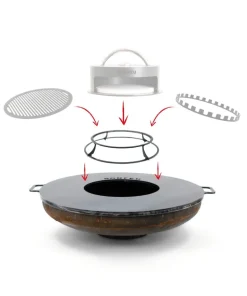 Compatible avec les braséros Bonbowl 100cm ce support est l’idéal pour accuillir tous les accessoires bonfeu sur un plancha de brasero d’un foyer de Ø45cm