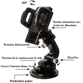 Support universel à ventouse et/ou à clip pour GPS, PDA, téléphone… – Rotation 360°
