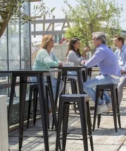 Ce tabouret de bar empilable en location accompagne parfaitement nos tables mange-debout. Vous apprécierez particulièrement son design brut et industriel. Pour aménager un espace lors d’un salon professionnel ou tout autre événement, optez pour la location de ce tabouret de bar en métal.