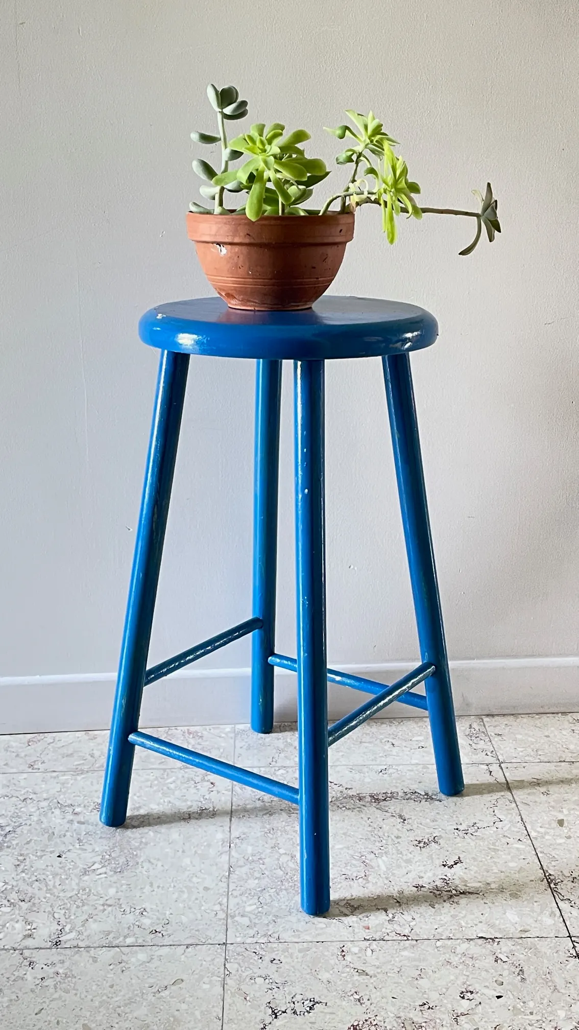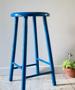Petit TABOURET Vintage BLEU Electrique – 65€