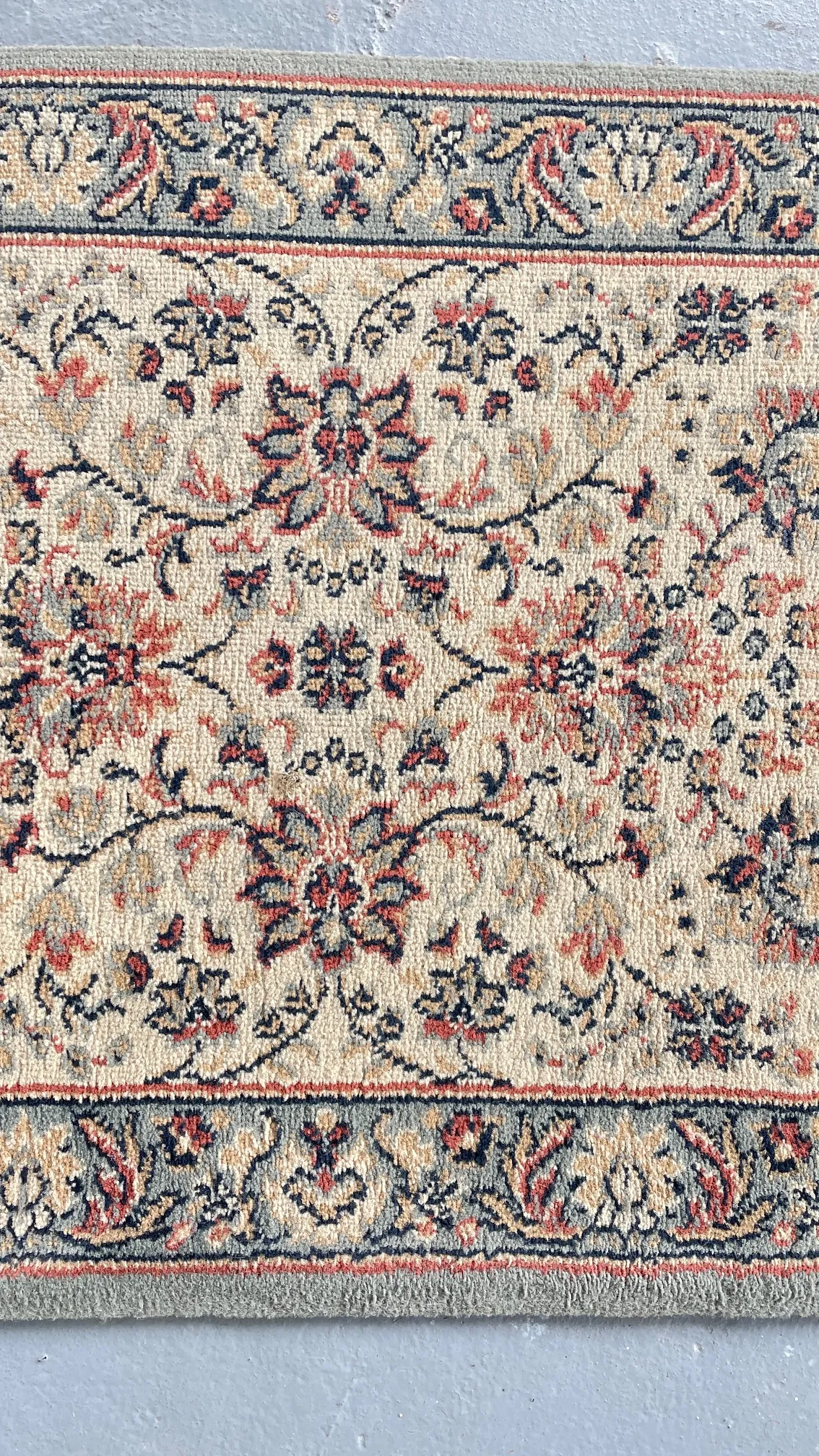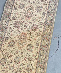 Très beau TAPIS de Couloir Mécanique Vintage de taille 51cm sur une longueur de 304cm. 1 Tapis aux Couleurs douces et Tons Bleu, Gris et Beige .. 1 dimension parfaite pour le placer dans une Entrée, un Couloir, sur un long Balcon …