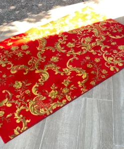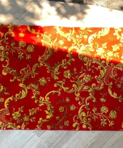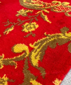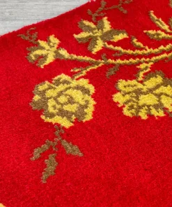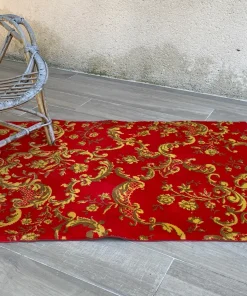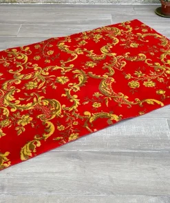 Un tapis de belle Qualité, Doux au toucher et dense, dans les tons rouge vif et Jaune-doré, un Tapis au format idéal pour le déplacer au gré de vos envies Déco !
