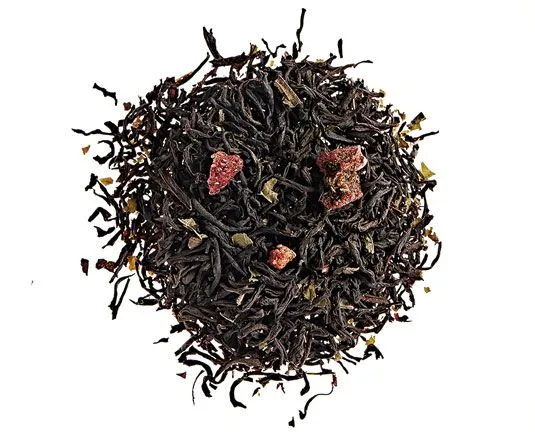 Thé noir parfumé aux notes dominantes de fruits rouges, feuilles de mûrier, morceaux de fraise, feuilles de framboisier