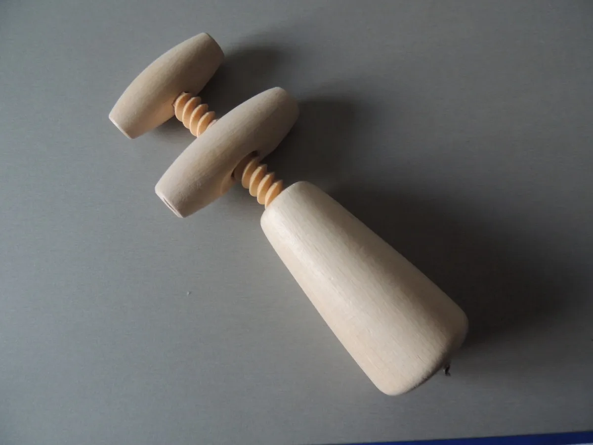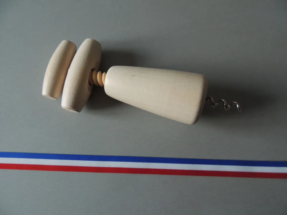 Tire-bouchon traditionnel à hélice, en bois, qui permet de bien entourer le bouchon et ainsi de le retirer de la bouteille de manière droite.