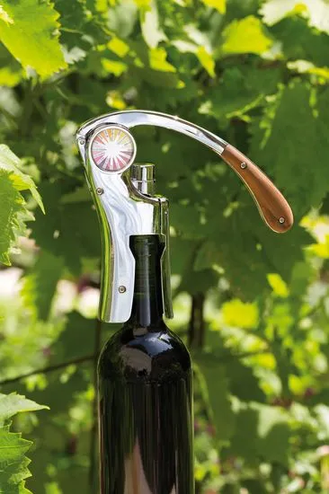 Compact, le tire-bouchon à levier vertical Oeno Motion® Wood assure un débouchage facile et rapide des bouteilles de vin. Ses deux cadrans indiquent une sélection de robes du vin rouge et du vin blanc.