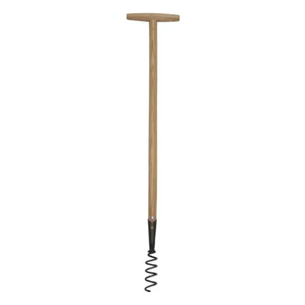 Le tire-racines possède un manche en bois en frêne avec une poignée « en T » de 14 cm de largeur. Cela permet une très bonne prise main, notamment au moment de la rotation.