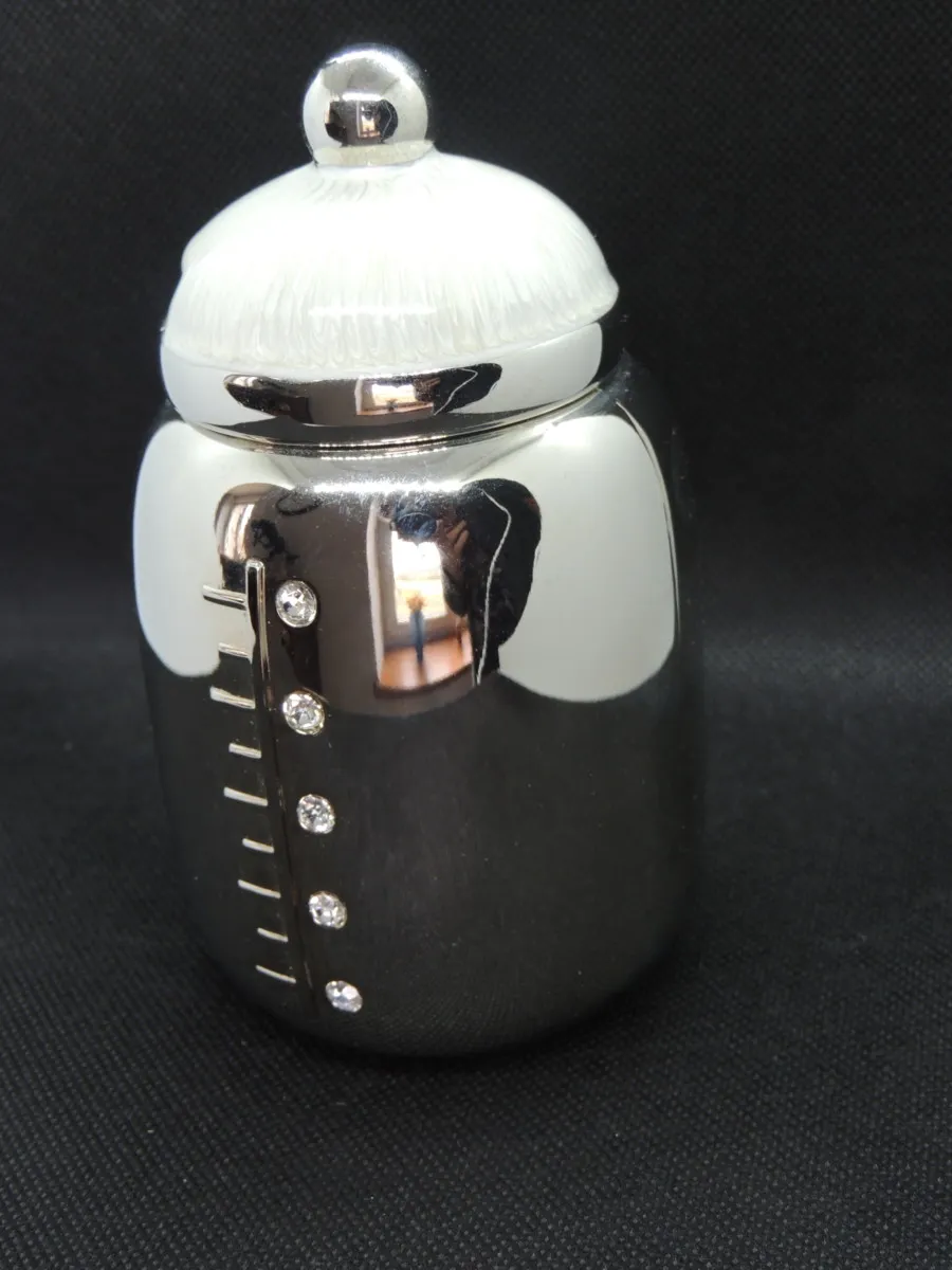 Tirelire en forme de biberon de belle qualité incluant des strass sur les mesures de celui ci.