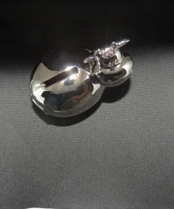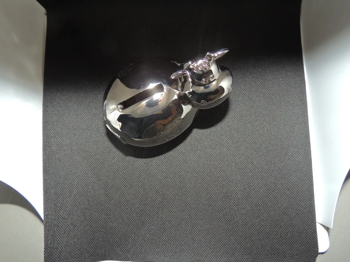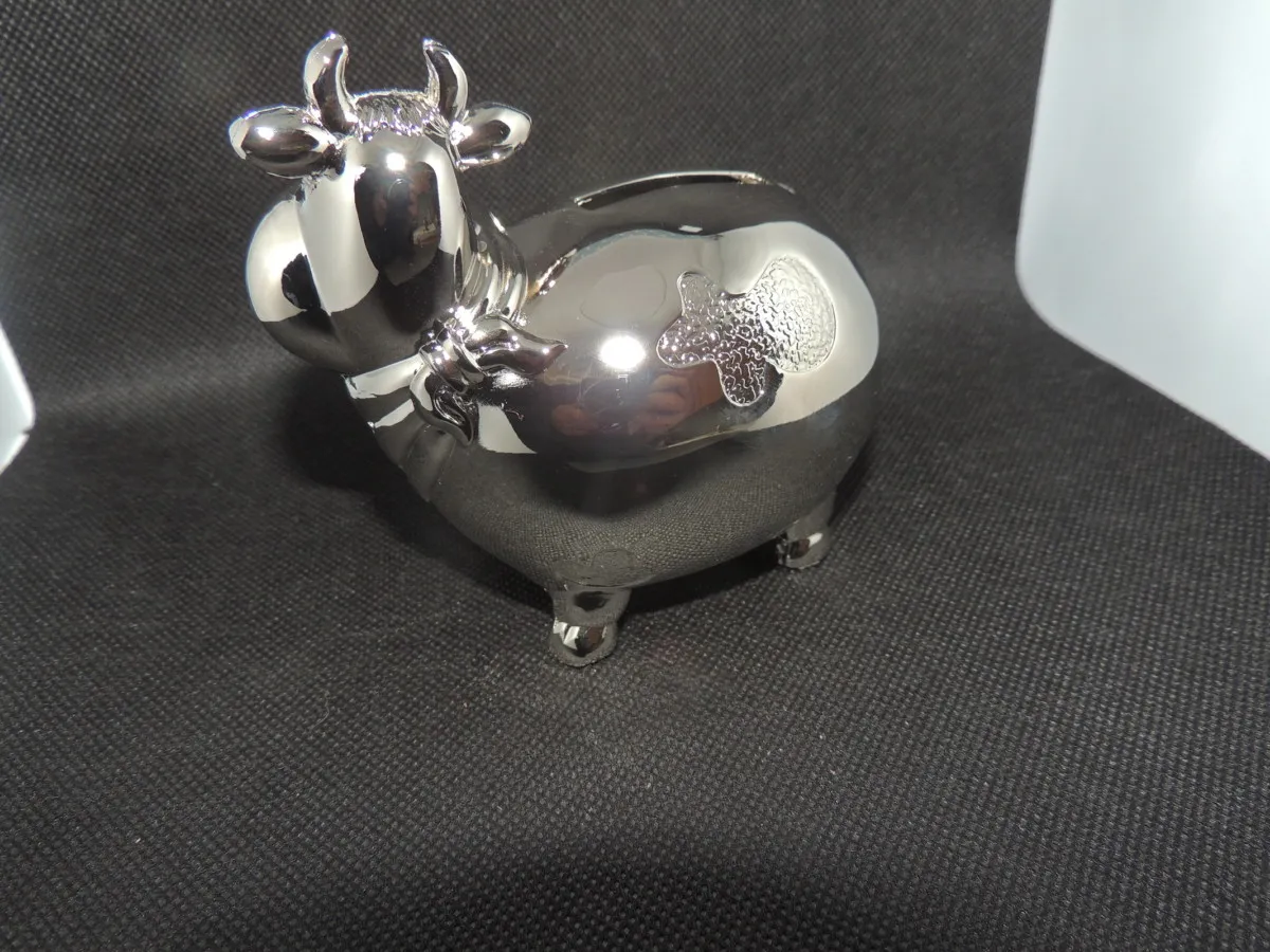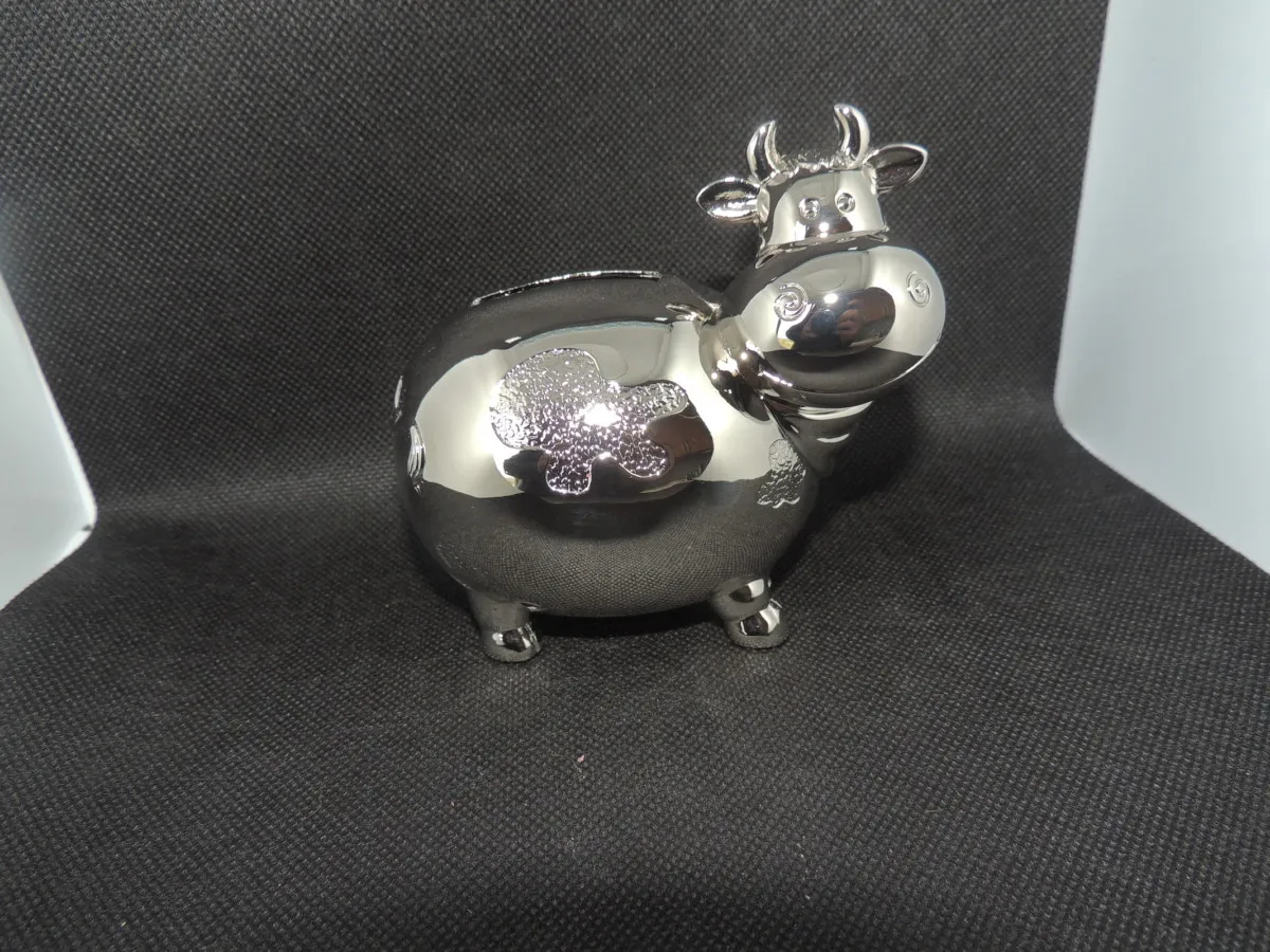 Mignonne petite vache en métal argenté pour décoré la chambre de bébé. Enchantera tous les parents.