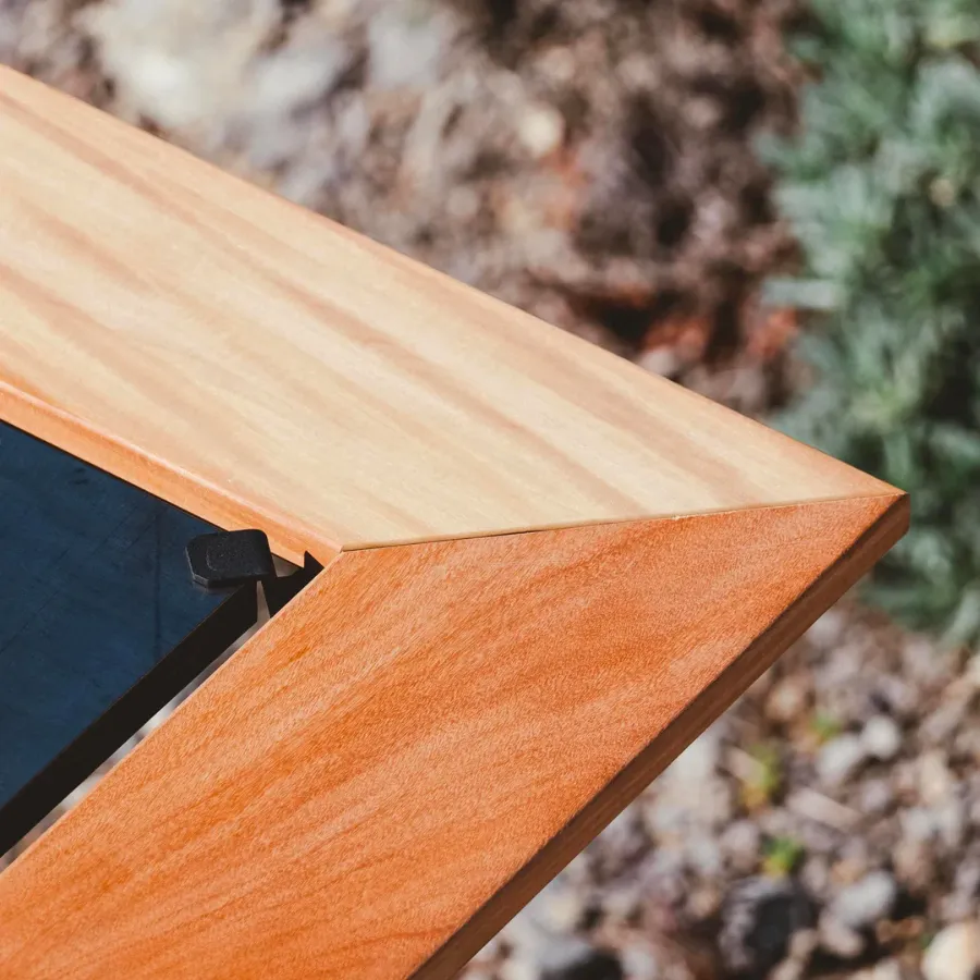 Ce tour en bois de Garapa permet d’éviter tout contact éventuel avec la plaque de cuisson et peut servir d’appoint pour poser un verre ou une petite assiette.