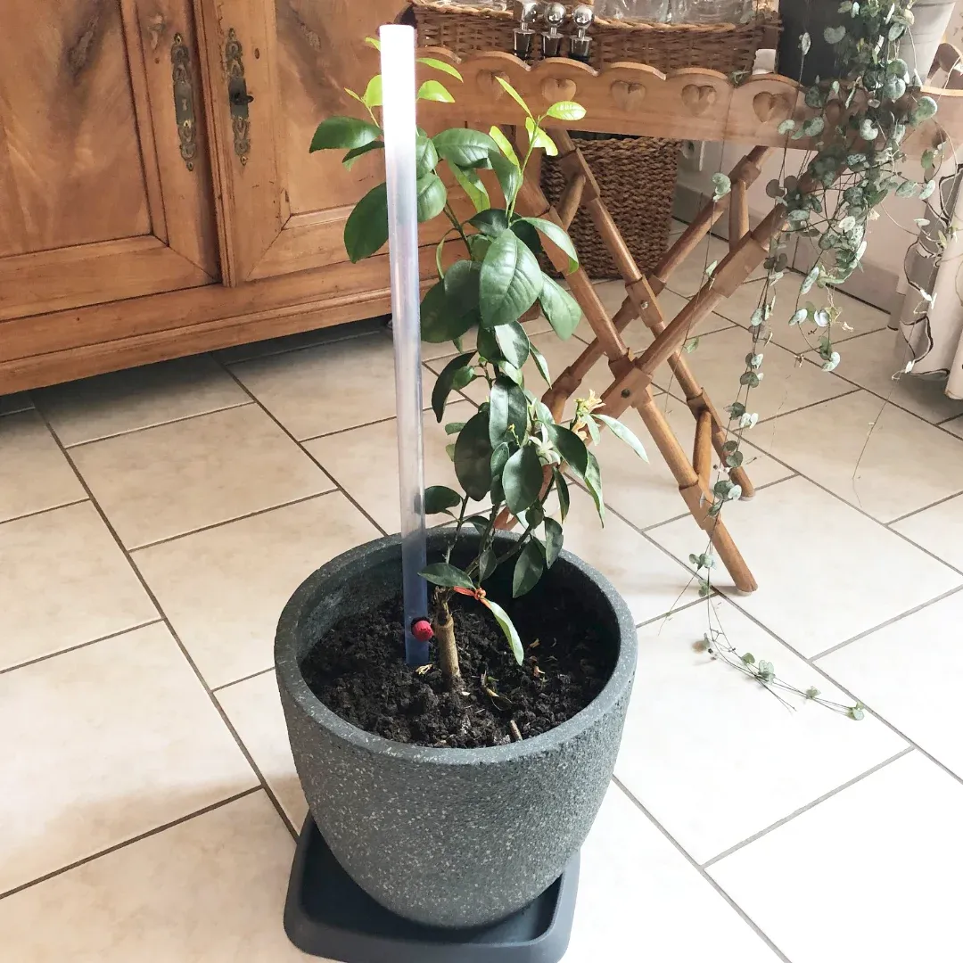 Le tuteur goutteur, en PVC rigide transparent, sert à la fois de système d’arrosage économique et de support à vos plantes.