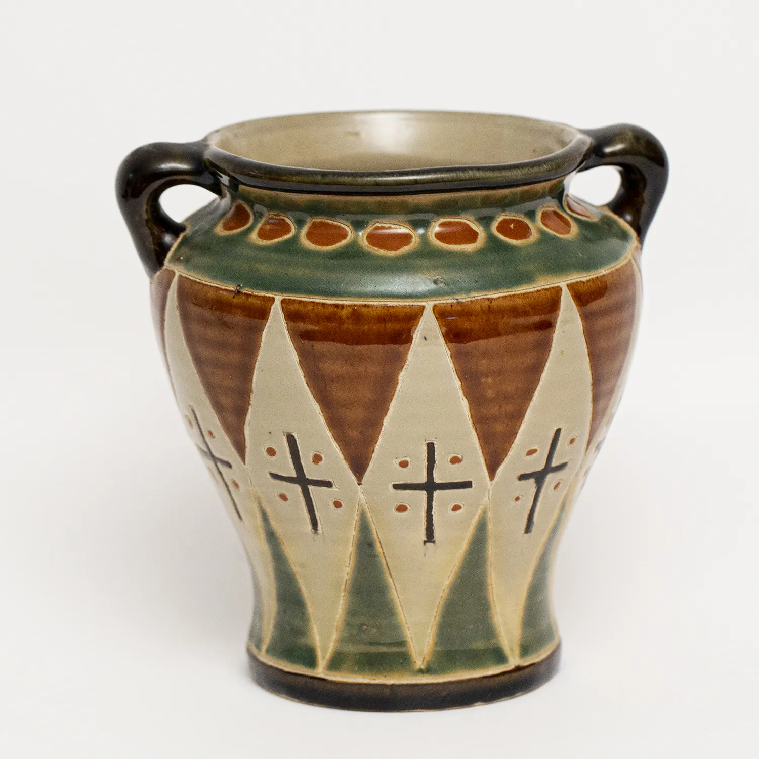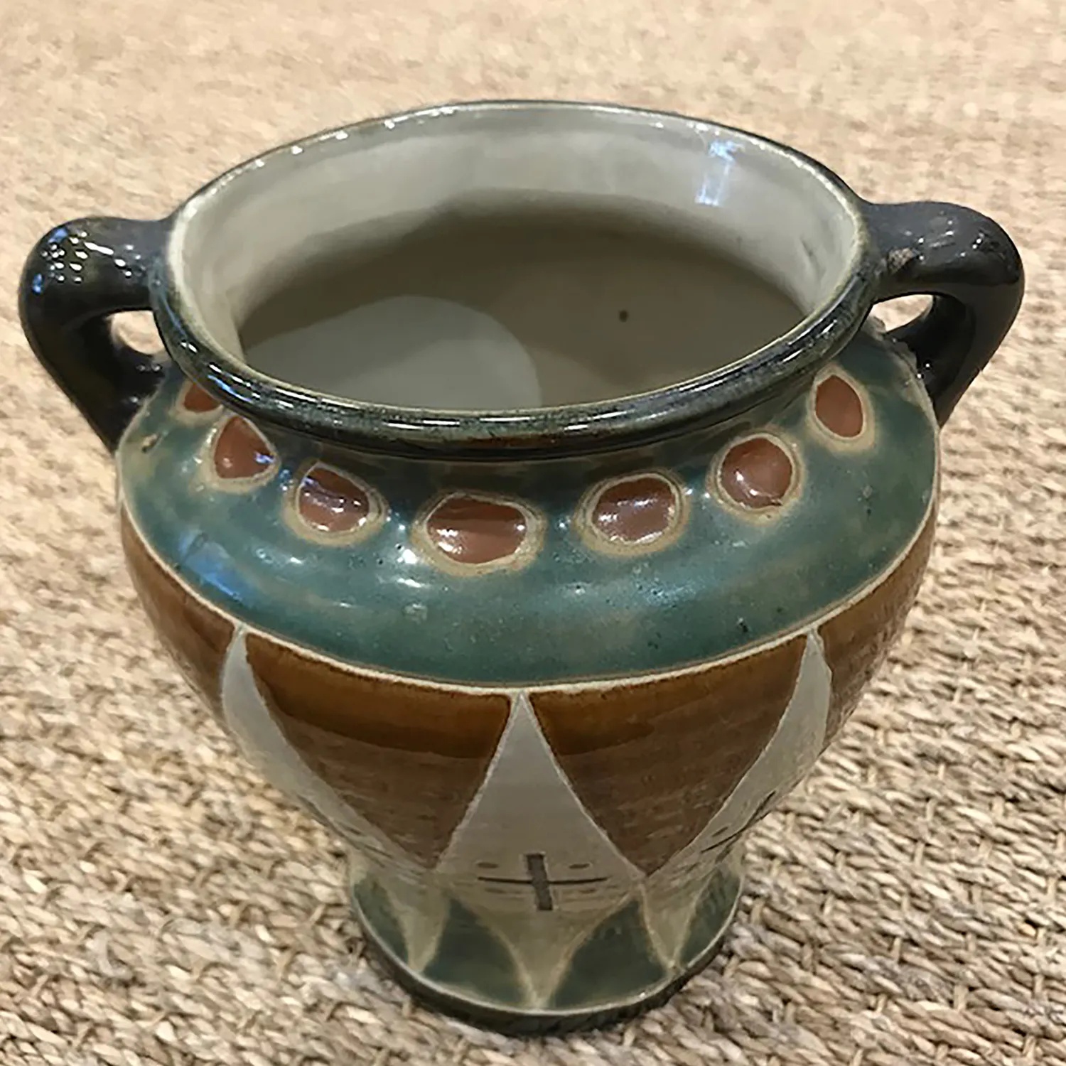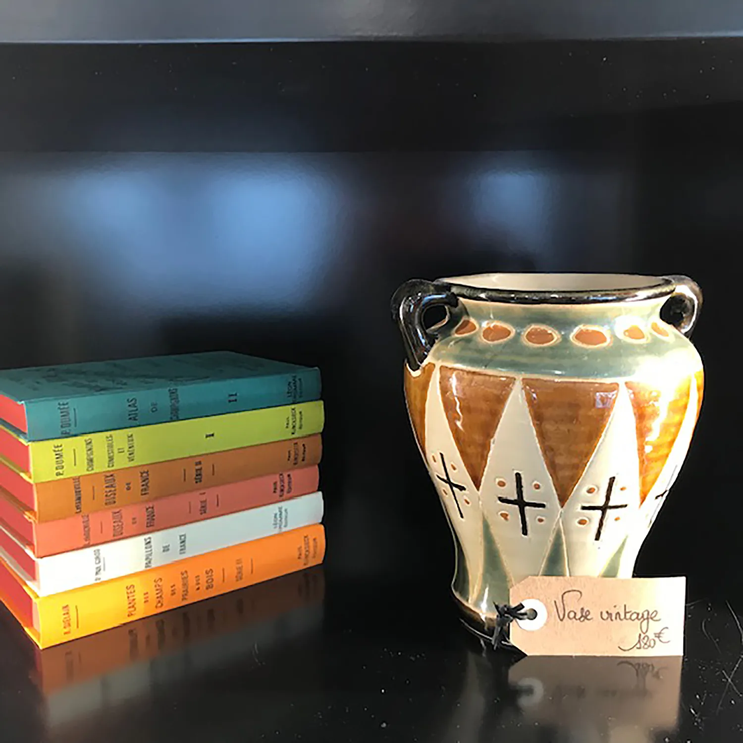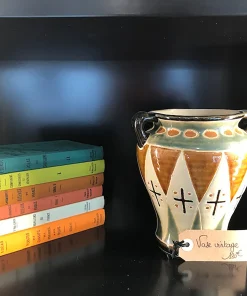 Vase en terre cuite avec 2 anses. le design est original et chic. le mélange de couleurs est très réussi .