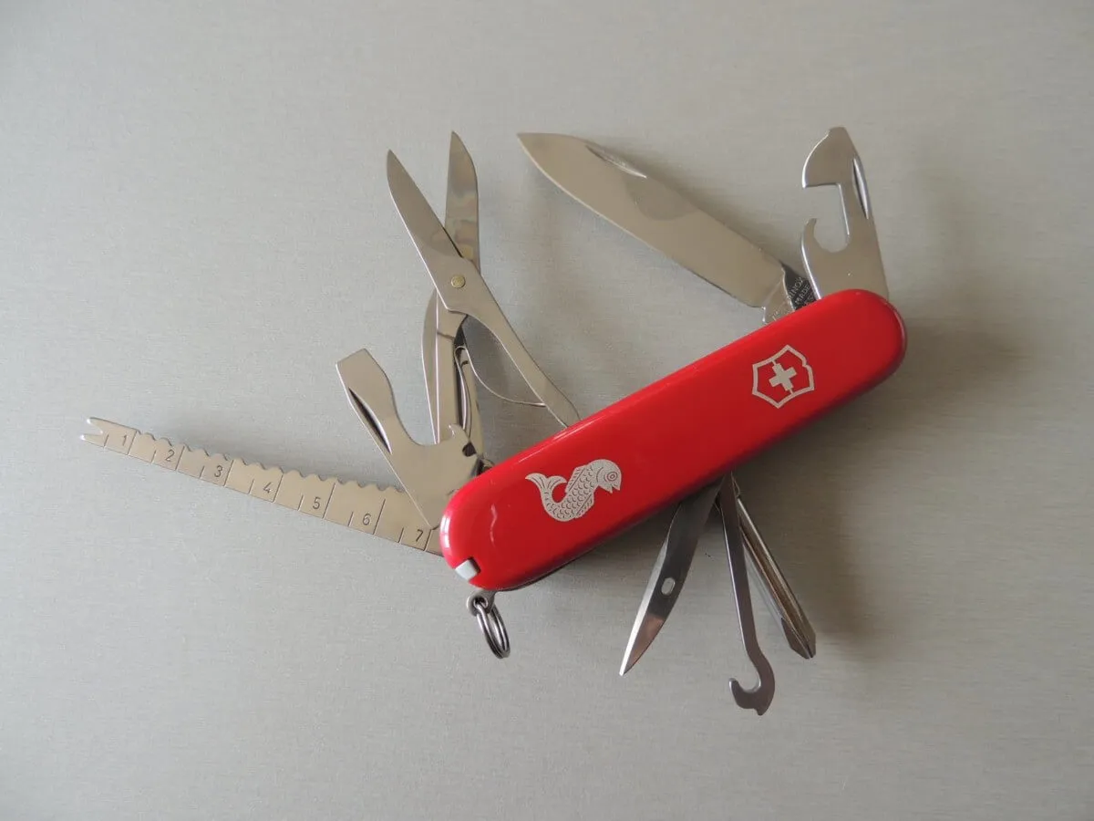 Couteaux de poche Victorinox FICHERMAN, 11 pièces, 18 fonctions. Motif poisson.