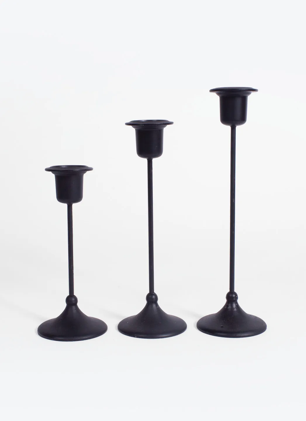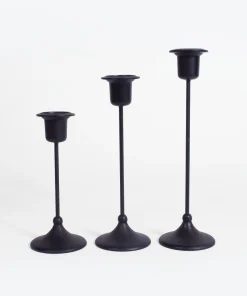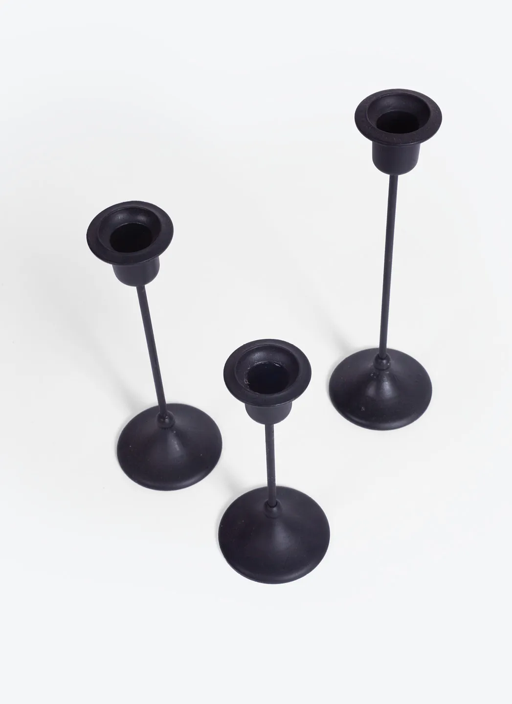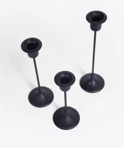 Ensemble de trois bougeoirs en fer. Sculpturaux et minimalistes, ils ajouteront une touche de design à toute table à manger.