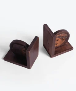 Magnifique paire de porte-livres en bois foncé. Le travail du bois et l’attention portée aux détails sont remarquables.