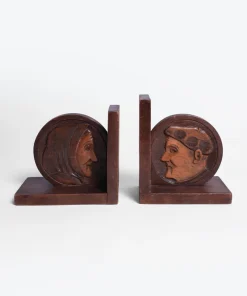 Magnifique paire de porte-livres en bois foncé. Le travail du bois et l’attention portée aux détails sont remarquables.